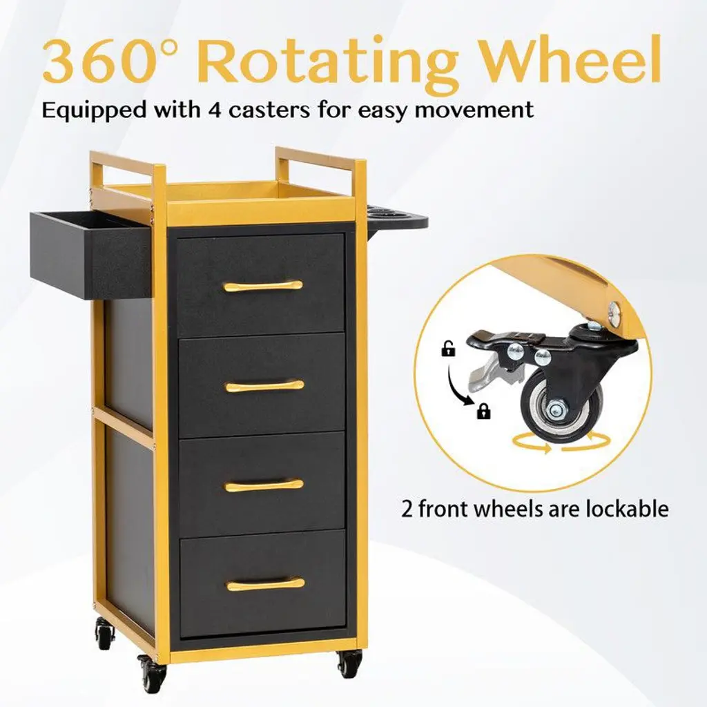 Karl Home Rolling Salon Trolley Cart With 4 Drawers And Tool Holders Black