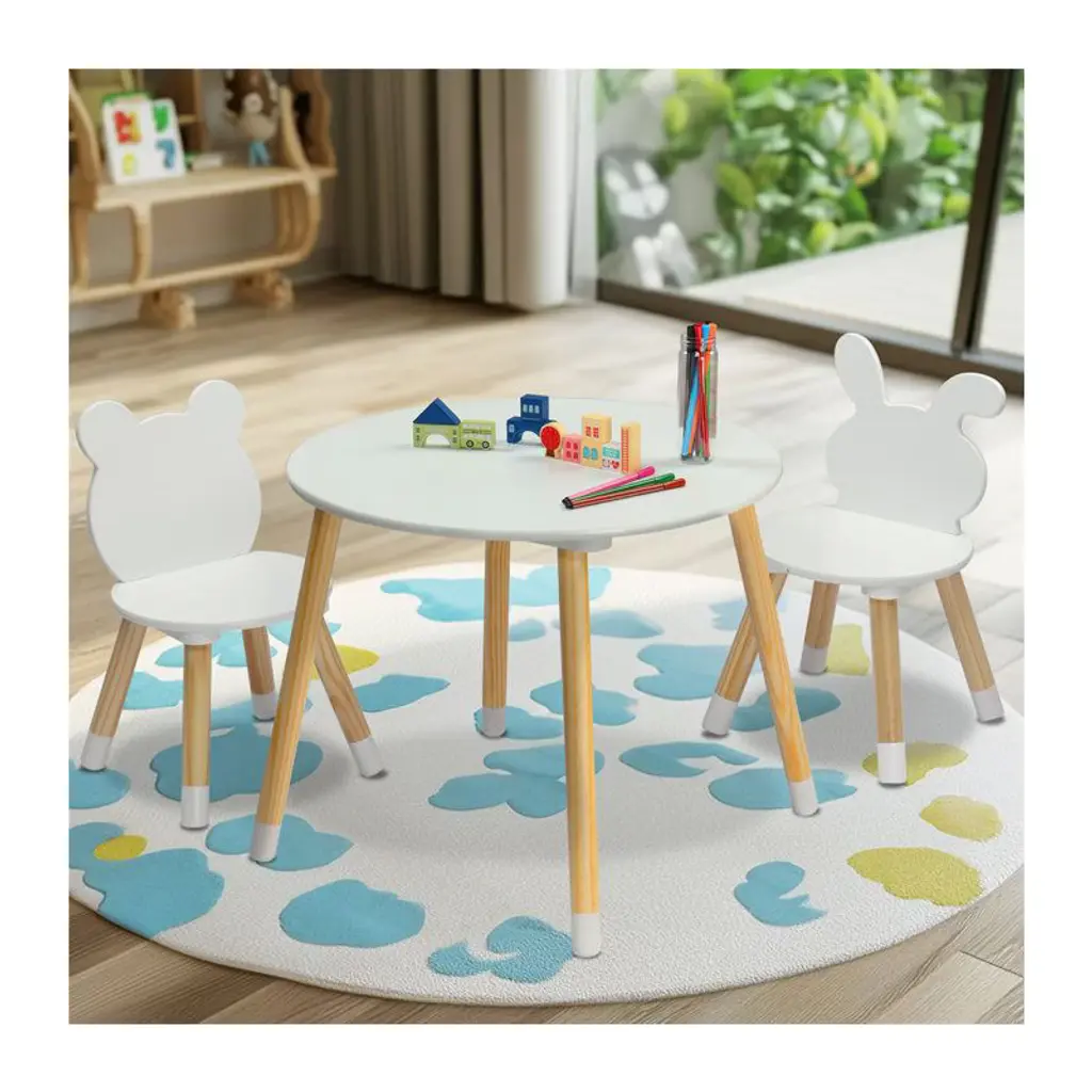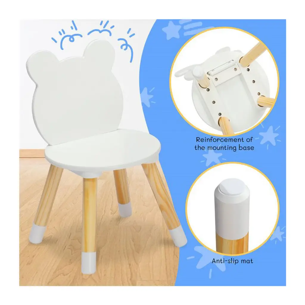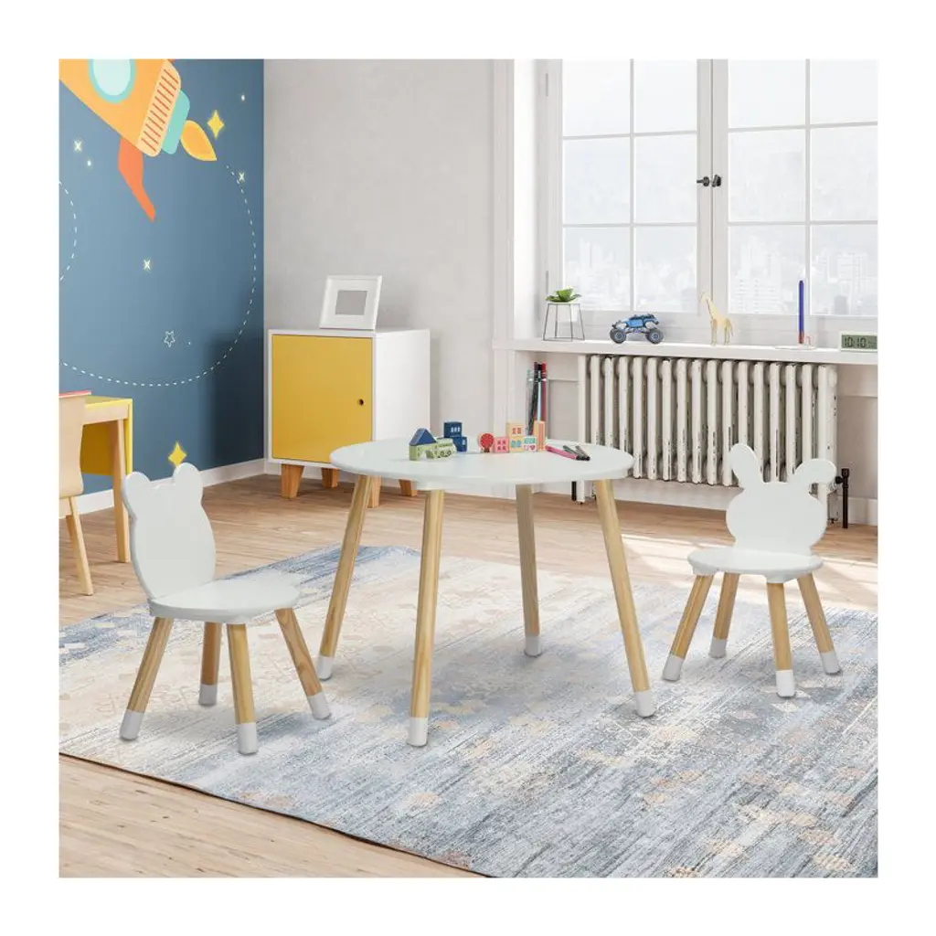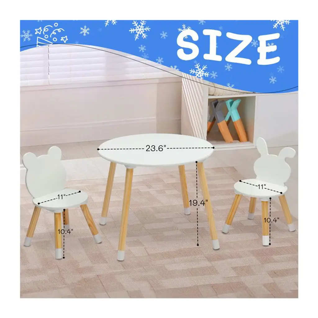 Create a delightful and functional space for your little ones with this Kids Wood Table and Chairs Set. Designed specifically for children over 2 years old, this 3-piece set includes a round table and two adorable chairs with charming bear and bunny-shaped backrests. The sleek, modern design combines white and natural wood tones, effortlessly blending into any home, classroom, or daycare setting. From art and craft projects to snack time, this set promotes fun and learning while prioritizing safety and style.