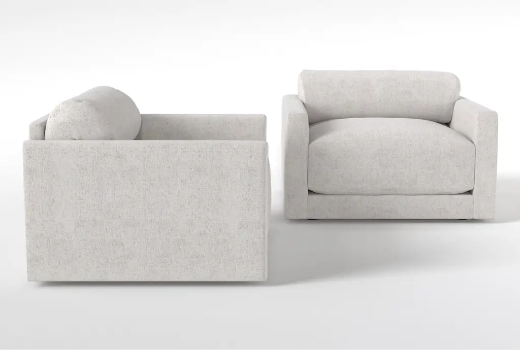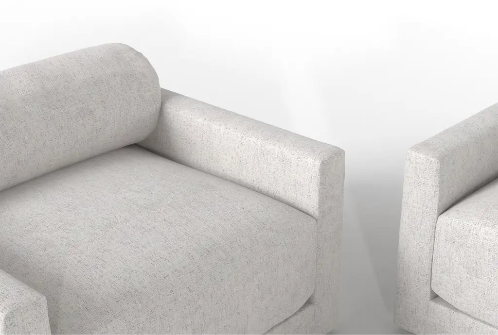 Experience the ultimate in relaxation with the Karla Swivel Cuddler Set of 2. These contemporary chairs feature a soft birch color and a plush, inviting design that will enhance any living room. Made from 100% polyester fabric, these swivel chairs are perfect for cozying up with a good book or enjoying conversation with friends.