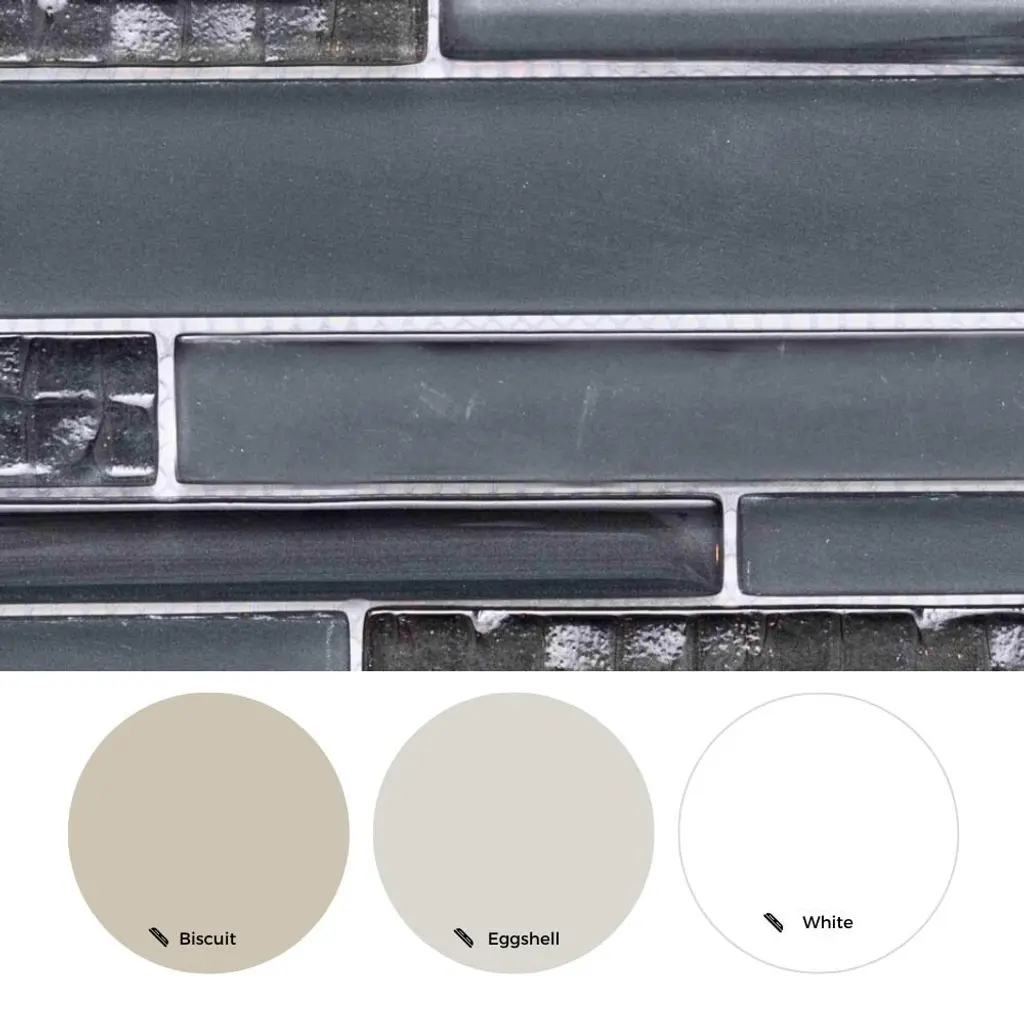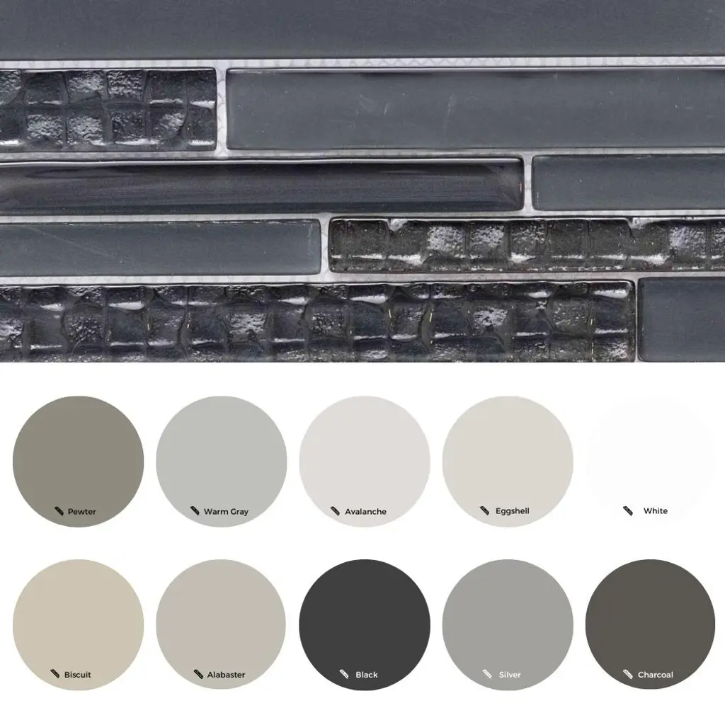 Say hello to our Karma Glass Mosaic line! This beautiful textured mixed brick tile glass mosaic comes in different colors. It has incredible features like 3D effects for a unique modern appearance. The Tile Life's Karma Glass Mosaic Tile can be used for backsplash and bathroom walls. Featuring a V2 slight variation, this rectified, straight-edge tile is perfect for creating stunning backsplashes, bathrooms, kitchens, and shower walls. Available in six elegant colors—Light Grey, Charcoal, White, Taupe, Cream, and Black—Karma tiles offer a sophisticated and versatile option for any residential indoor wall project. Sized at 12" x 12" and approved for residential use only. FEATURES:DIMENSIONS: