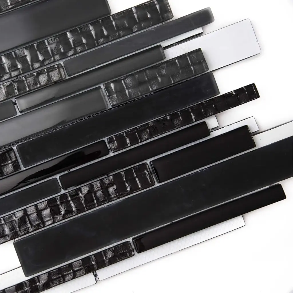 Karma Random Sized Brick Charcoal Glass Mosaic Backsplash Wall Tile - 1 Sheet (0.93 Sq. Ft.)