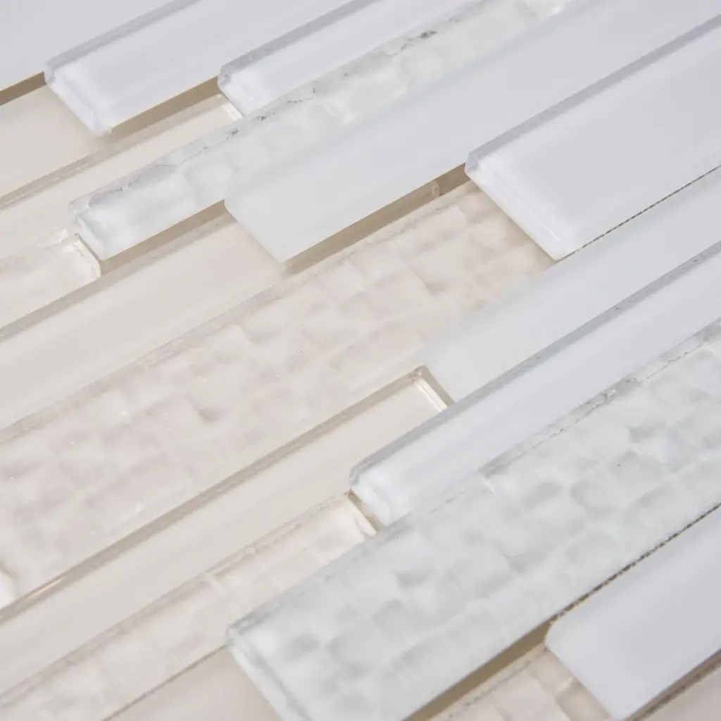 Say hello to our Karma Glass Mosaic line! This beautiful textured mixed brick tile glass mosaic comes in different colors. It has incredible features like 3D effects for a unique modern appearance. The Tile Life's Karma Glass Mosaic Tile can be used for backsplash and bathroom walls. Featuring a V2 slight variation, this rectified, straight-edge tile is perfect for creating stunning backsplashes, bathrooms, kitchens, and shower walls. Available in six elegant colors—Light Grey, Charcoal, White, Taupe, Cream, and Black—Karma tiles offer a sophisticated and versatile option for any residential indoor wall project. Sized at 12" x 12" and approved for residential use only. FEATURES:DIMENSIONS: