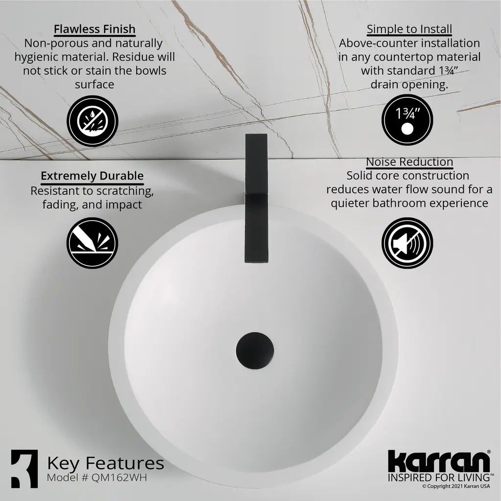 Karran Quattro Matte White Acrylic 19 In. Round Bathroom Vessel Sink With Faucet And Drain In Matte Black - White