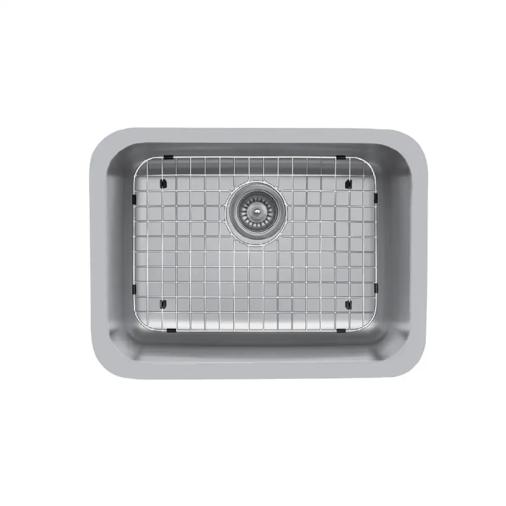 Karran stainless steel bottom grids will help maintain the brand new look of your sink, preventing unwanted scratches and scuffs from pots and dishes while allowing water to easily drain. Designed to protect your sink from daily dishwashing tasks. Karran stainless steel bottom grids will also enhance the look of your sink.Features & BenefitsProduct Dimensions: 12-1/2" x 14-5/8"Constructed of solid T304 stainless steel to resist corrosionProtective bumpers and rubber feet elevate grid and prevent slippingFits Karran Sink E-350, U-5050Easy to clean with liquid soap and water1-year limited warranty