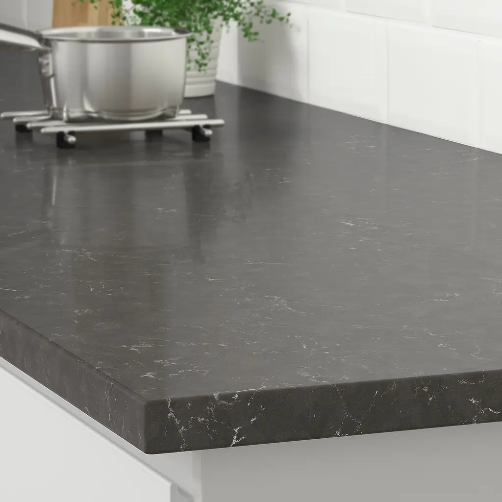 KASKER Custom countertop - dark gray marble effect/quartz 1 1/8 ". Limited lifetime warranty. Read about the terms in the guarantee brochure. The countertop is custom-made for your kitchen solution. Select the appropriate depth and length.