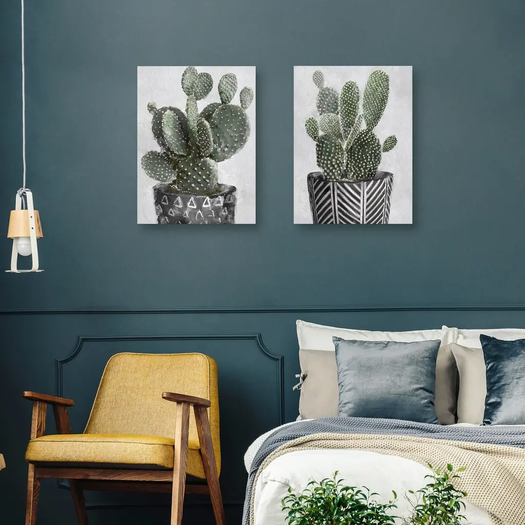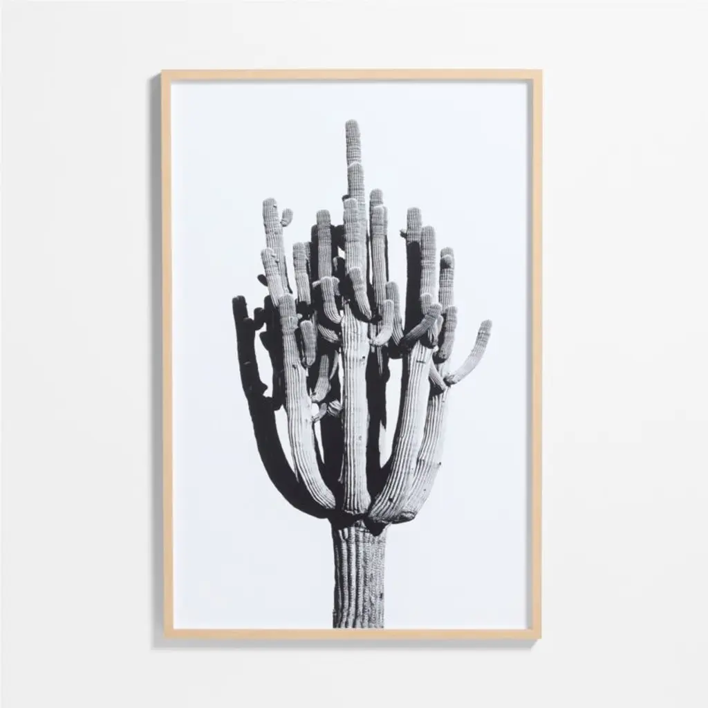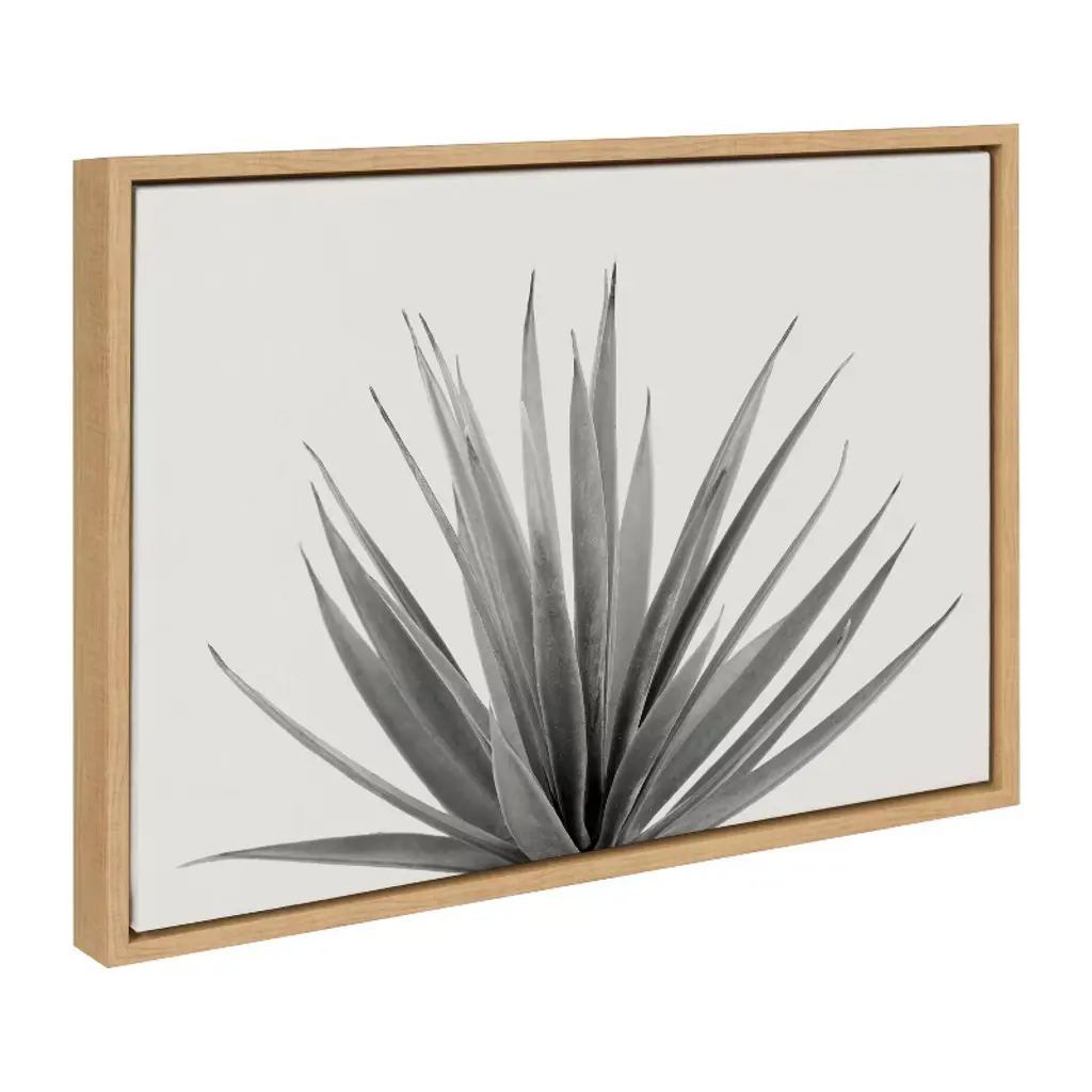 Transform your room into a desert oasis with this set of framed canvas art. It showcases the natural elegance of aloe succulents, tall and short cacti, and agave plants in a soothing arrangement. Framed in the USA in Waunakee, Wisconsin, this modern floating canvas art set of 4 is sure to bring joy to your space. Our design team curates art that will fit perfectly in any room of your home. Showcase this art in your living room, bedroom, home office, kitchen, bathroom, nursery, or anywhere you want to bring a little beauty and charm to your walls. Specializing in home décor, we are continually bringing timeless works of art for the traditional decorator as well as trend-forward pieces for that eclectic art lover. Our high-quality framed canvas art also makes excellent gifts for birthdays, holidays, or housewarming parties. Printed on gallery-wrapped canvas and framed with a simple gallery frame this wall art is easy to display on the wall and will match with any décor style. Display dimensions of the larger frames are 18 inches by 24 inches, and the two smaller frames are each 14 inches by 18 inches by 1.6 inches. Print Names: “Haze Aloe Succulent, Cactus Tall, Cactus Short and Agave Succulent”