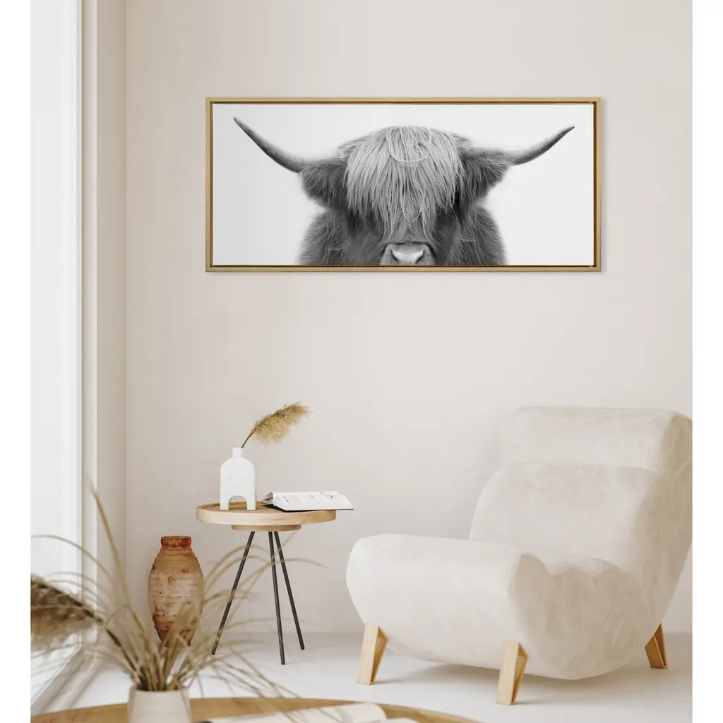 Kate And Laurel Highland Cow Frame Canvas By The Creative Bunch Studio - 18x40 - Plastic - Gold