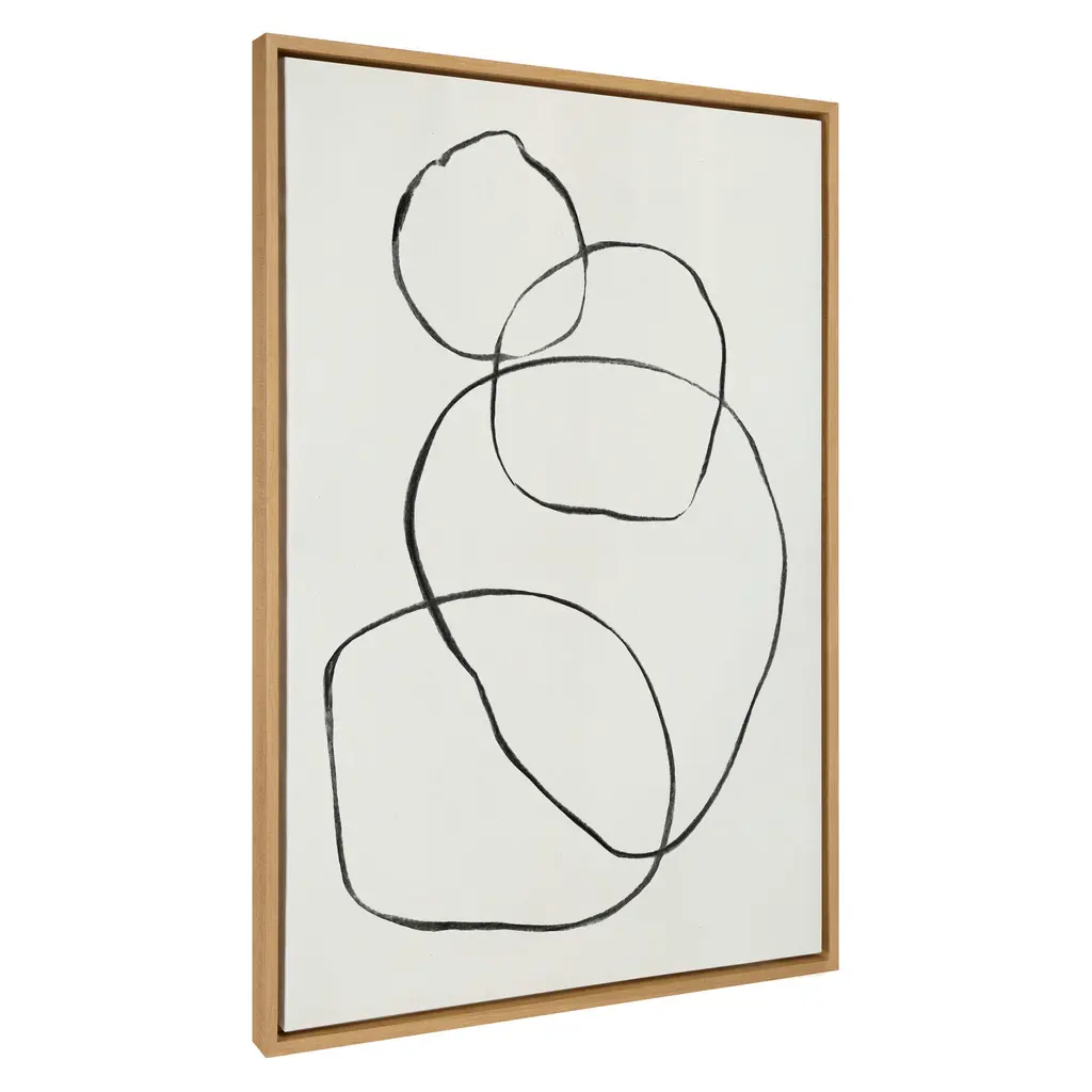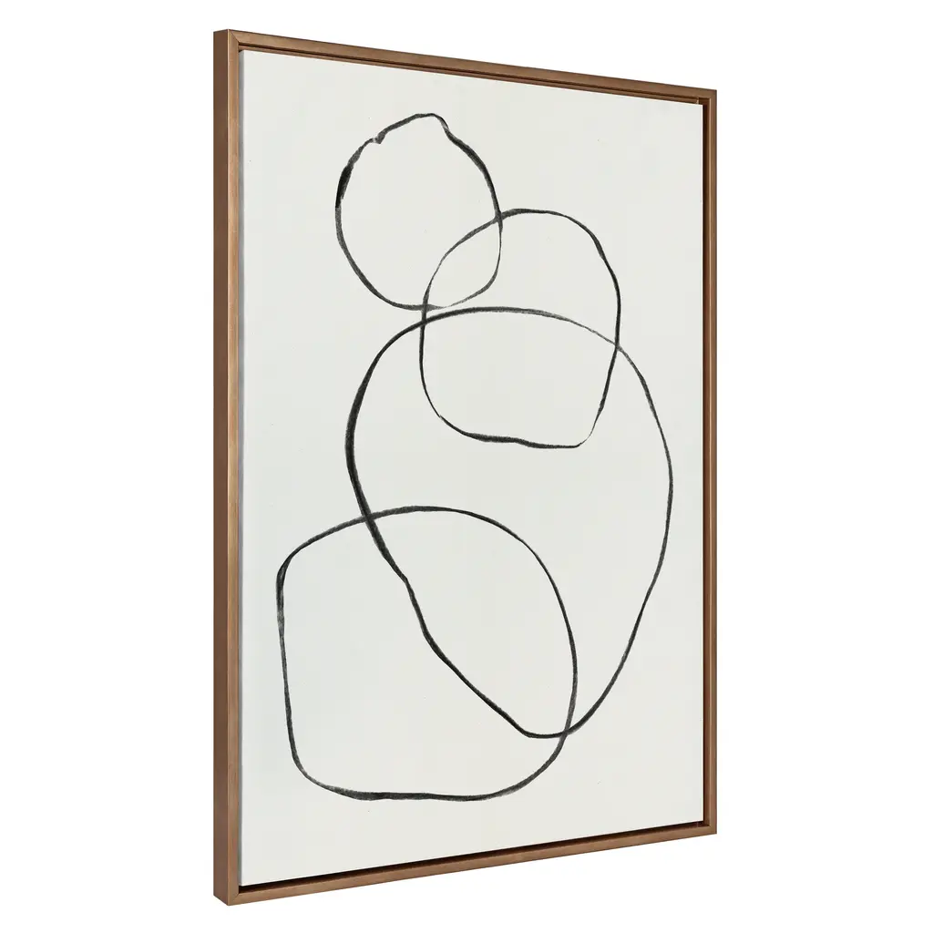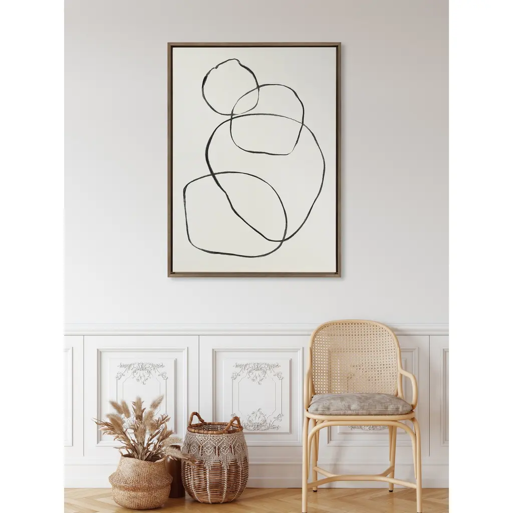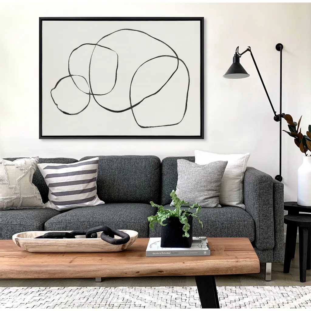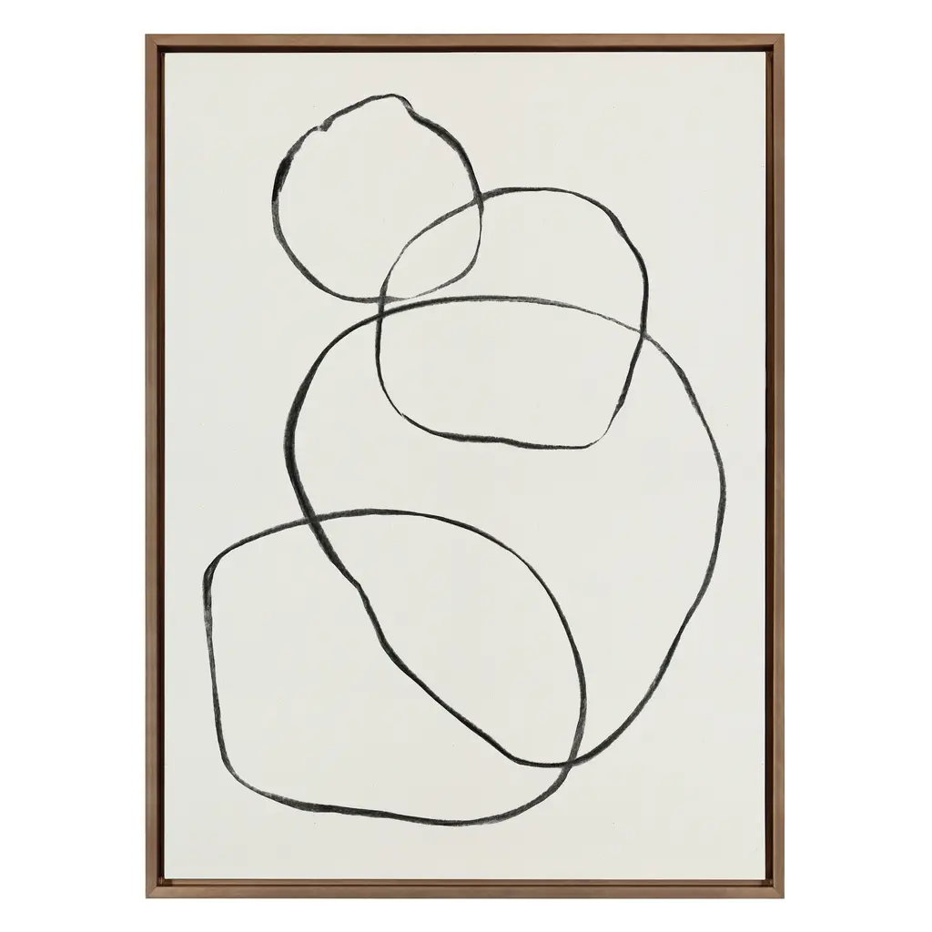 Bring modern sophistication to your wall with this charming and versatile abstract print. Framed in a sleek modern frame, this contemporary design is the perfect art piece to add to your home decor collection. Printed and framed in the USA in Waunakee, Wisconsin, this framed linen textured canvas art will be a pleasure to look at every day in your living room, bedroom, office, or any room in the home. This art print also makes an excellent gift for a birthday, holiday, or housewarming. It has two hangers already attached for easy wall display. The outer dimensions are 38 inches by 28 inches by 1.6 inches. Print Name: "869 Going in Circles"