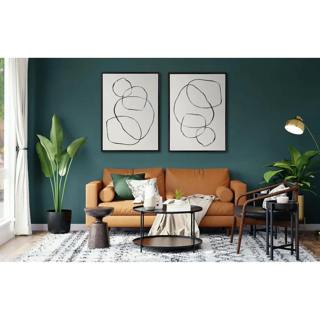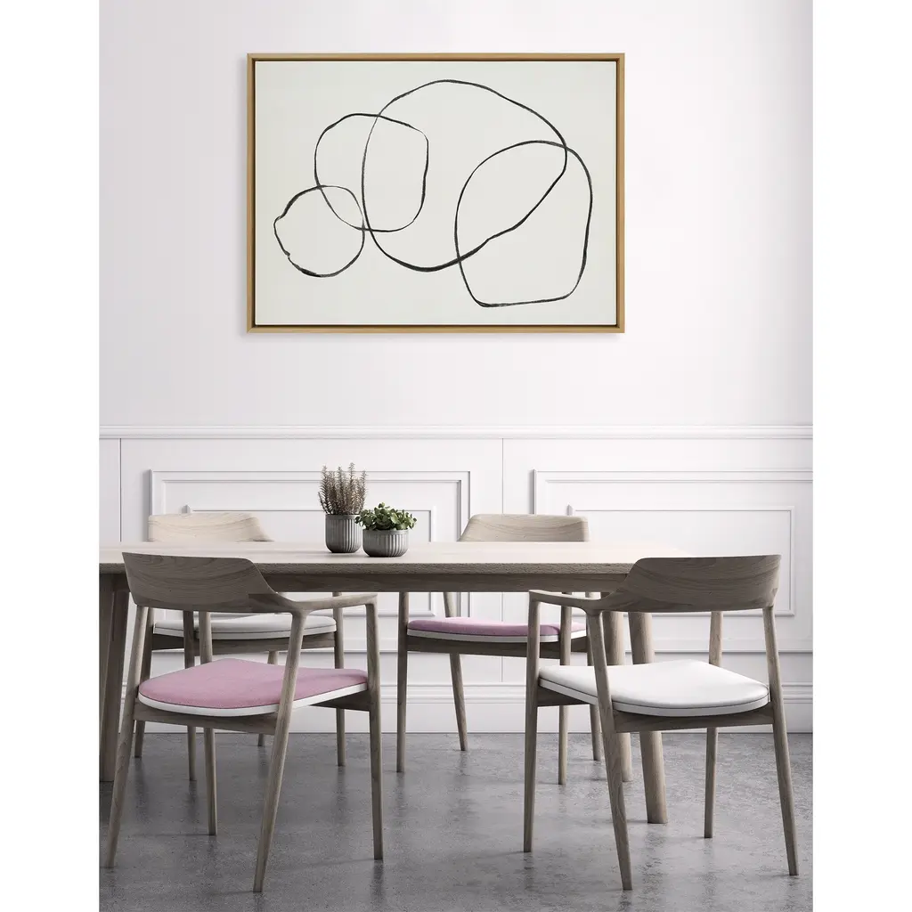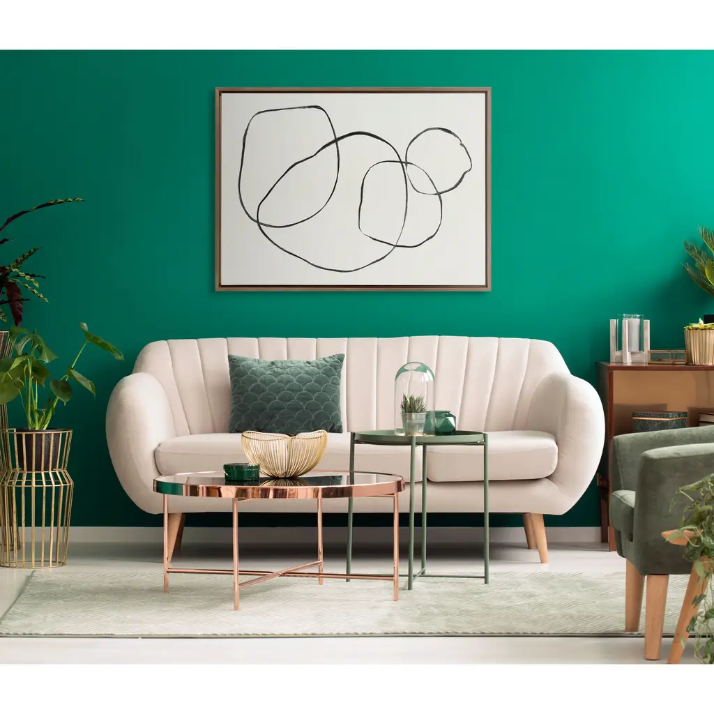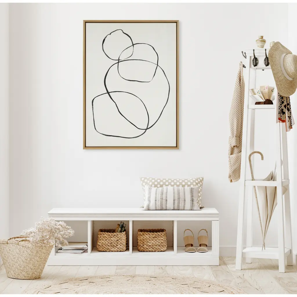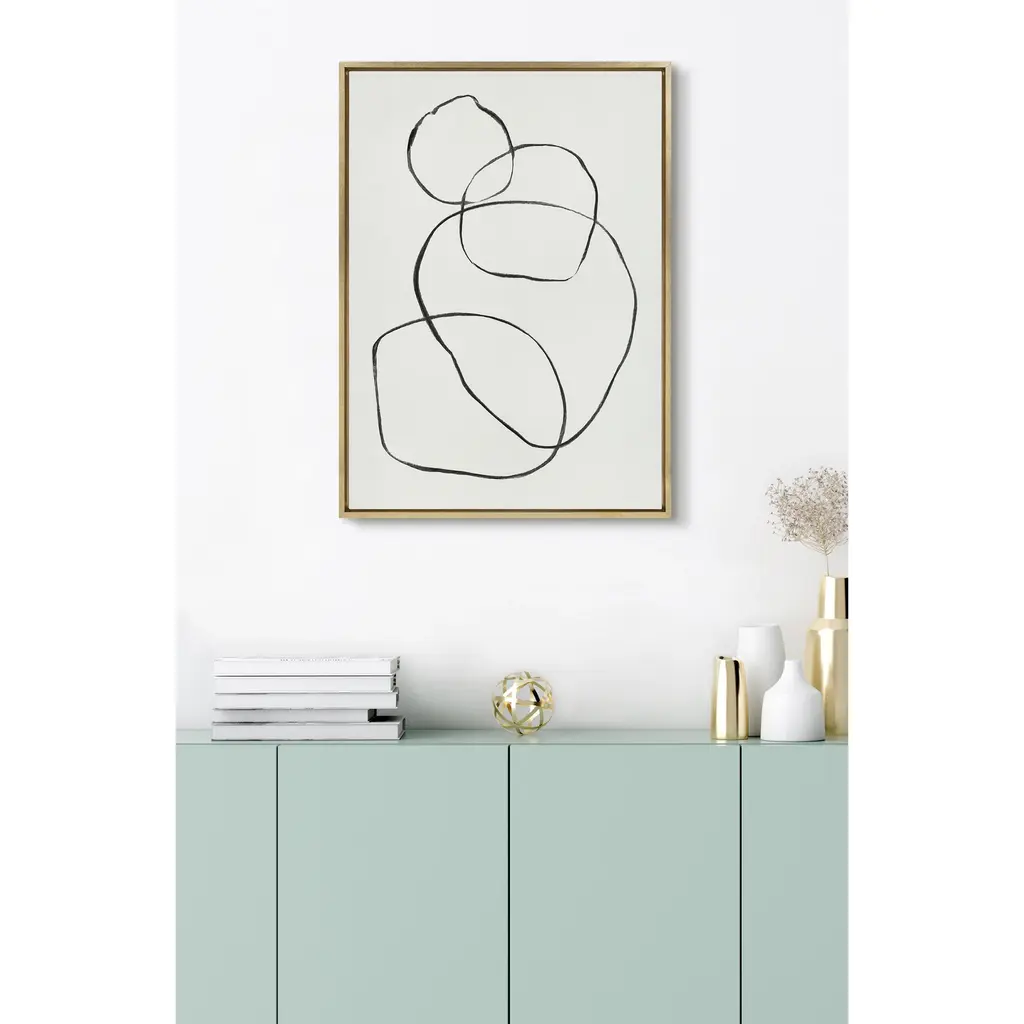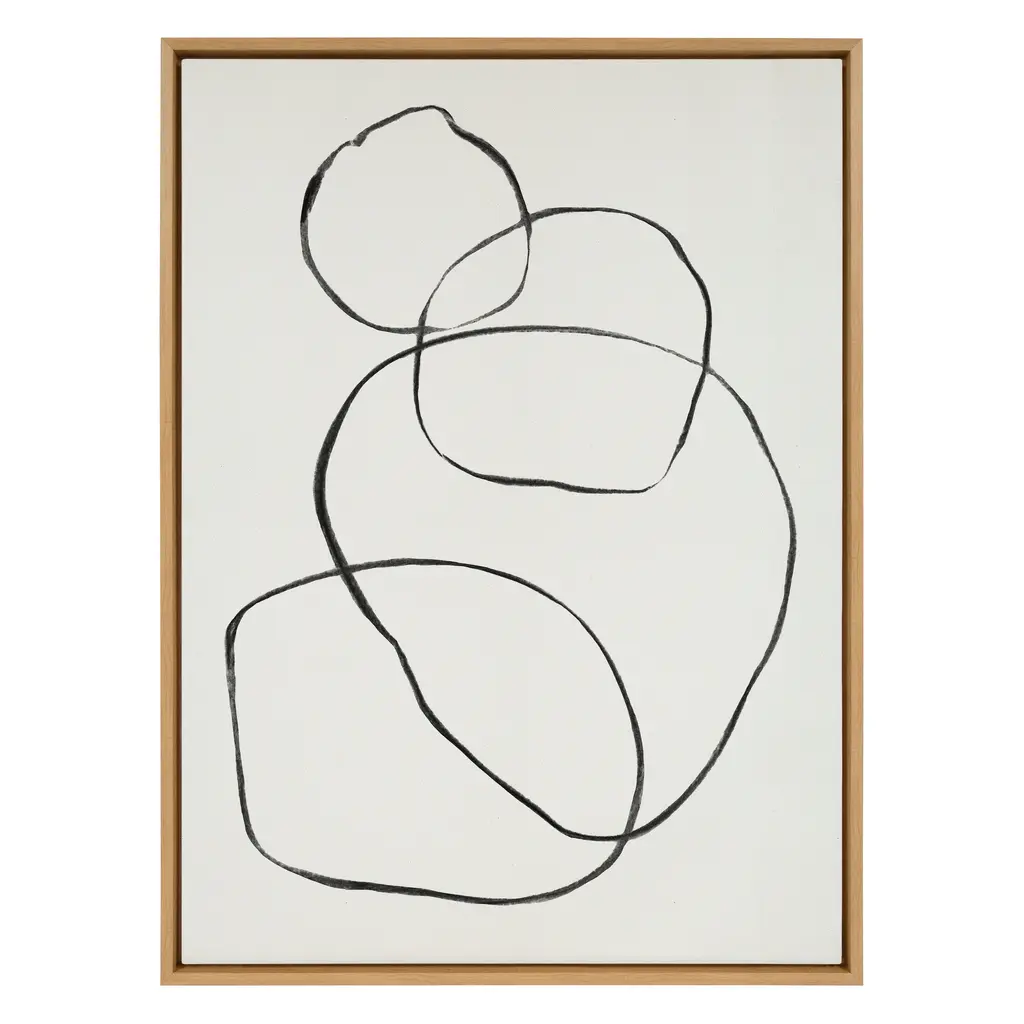 Bring modern sophistication to your wall with this charming and versatile abstract print. Framed in a sleek modern frame, this contemporary design is the perfect art piece to add to your home decor collection. Printed and framed in the USA in Waunakee, Wisconsin, this framed linen textured canvas art will be a pleasure to look at every day in your living room, bedroom, office, or any room in the home. This art print also makes an excellent gift for a birthday, holiday, or housewarming. It has two hangers already attached for easy wall display. The outer dimensions are 38 inches by 28 inches by 1.6 inches. Print Name: "869 Going in Circles"