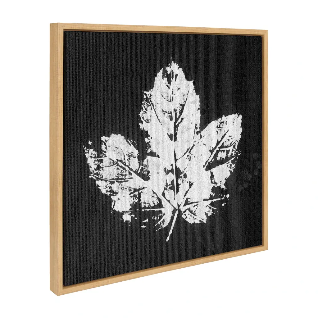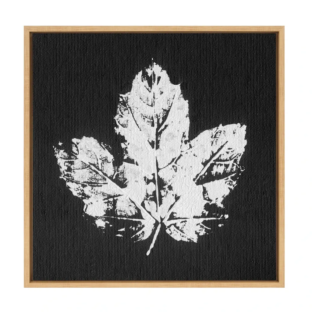 Embrace the beauty of autumn with this autumnal framed canvas wall art. With a natural frame and a striking black and white maple leaf art, this piece adds a touch of seasonal elegance to your home decor. Framed in the USA in Waunakee, Wisconsin, this modern floating canvas art is sure to bring joy to your space. Our design team curates art that will fit perfectly in any room of your home. Showcase this art in your living room, bedroom, home office, kitchen, bathroom, nursery, or anywhere you want to bring a little beauty and charm to your walls. Specializing in home décor, we are continually bringing timeless works of art for the traditional decorator as well as trend-forward pieces for that eclectic art lover. Our high-quality framed canvas art also makes excellent gifts for birthdays, holidays, or housewarming parties. Printed on gallery-wrapped canvas and framed with a simple gallery frame this wall art is easy to display on the wall and will match with any décor style. The outer dimensions are 22 inches by 22 inches by 1.6 inches. Print Name: "Autumns End BW"