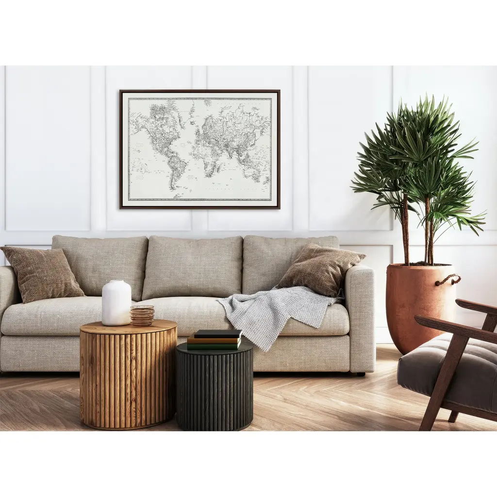 Kate And Laurel Sylvie Bw World Map Canvas By Creative Bunch Studio - 28x38 - Plastic - Brown