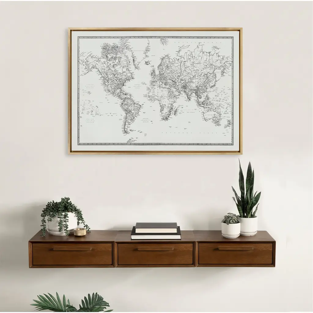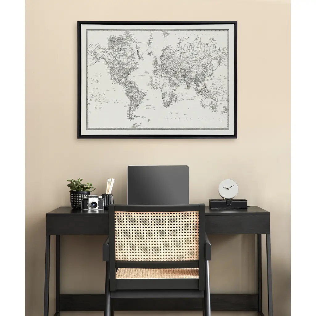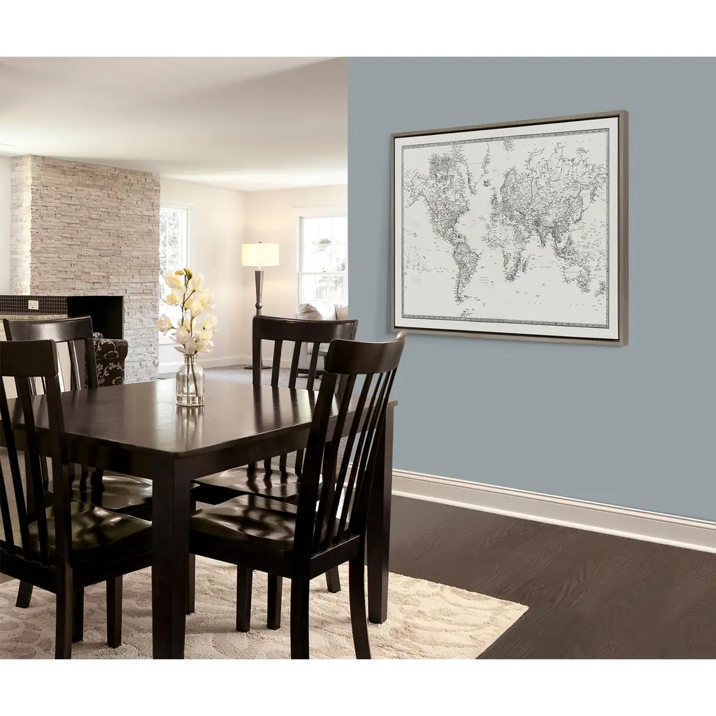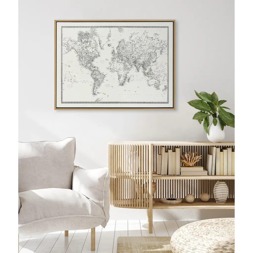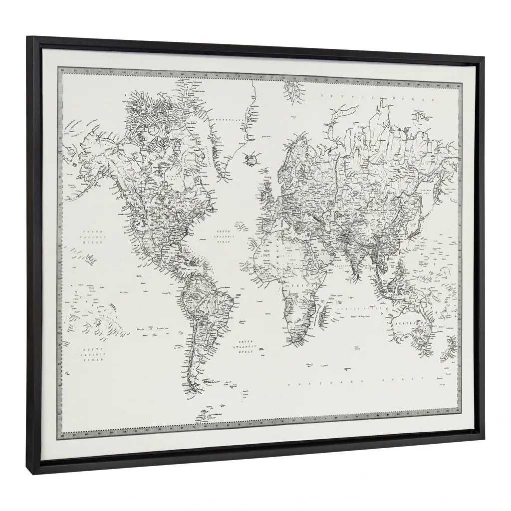 Chart a course across the globe with this vintage-inspired map art from The Creative Bunch Studio. Framed in the USA in Waunakee, Wisconsin, this floating canvas art will be a pleasure to look at every day in your living room, bedroom, home office, laundry room, bathroom, or any room in the home. This art print also makes an excellent gift for birthdays, holidays, or house-warming parties. Printed on gallery-wrapped canvas and framed with a lightweight polystyrene frame, this wall art is easy to display on the wall. The outer dimensions are 28 inches by 38 inches by 1.6 inches. Print Name: "Vintage Black and White World Map"