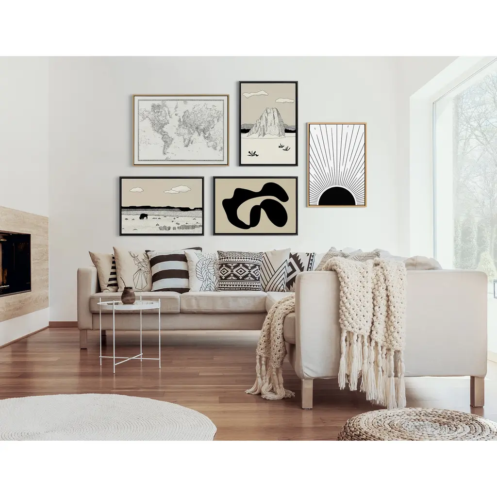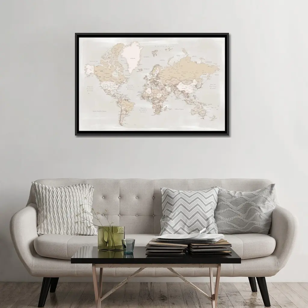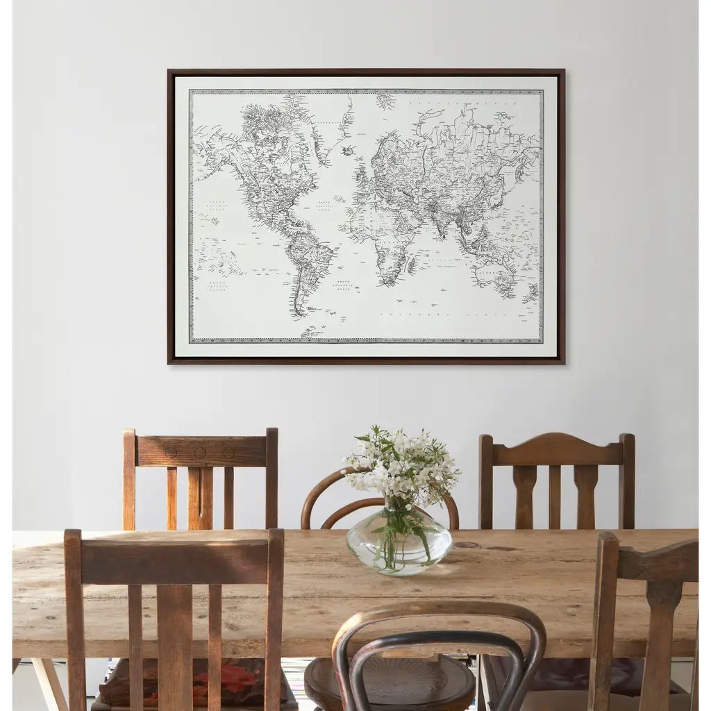 Chart a course across the globe with this vintage-inspired map art from The Creative Bunch Studio. Framed in the USA in Waunakee, Wisconsin, this floating canvas art will be a pleasure to look at every day in your living room, bedroom, home office, laundry room, bathroom, or any room in the home. This art print also makes an excellent gift for birthdays, holidays, or house-warming parties. Printed on gallery-wrapped canvas and framed with a lightweight polystyrene frame, this wall art is easy to display on the wall. The outer dimensions are 28 inches by 38 inches by 1.6 inches. Print Name: "Vintage Black and White World Map"