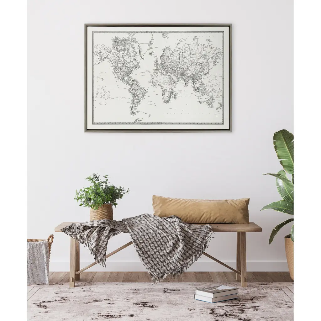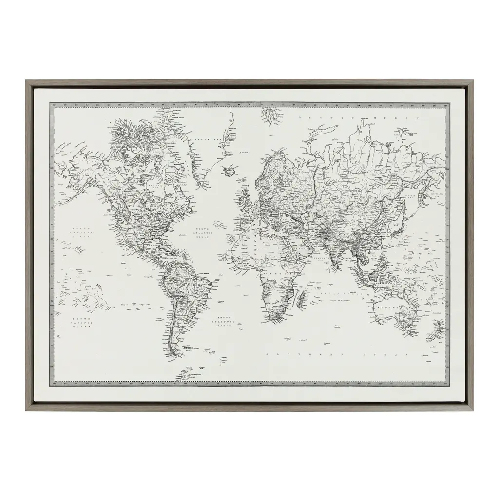 Kate And Laurel Sylvie Bw World Map Canvas By Creative Bunch Studio - 28x38 - Plastic - Grey