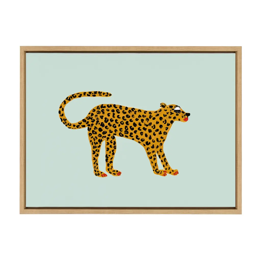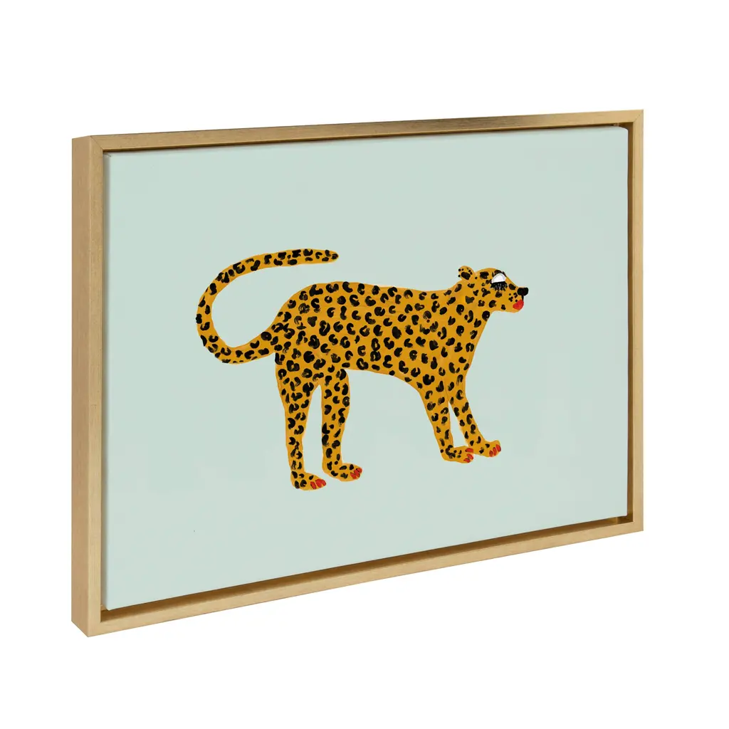 All cats are precious, even adorable predators like this elegant cheetah, designed by Kendra Dandy of Bouffants and Broken Hearts. Displayed in a sleek modern frame, these fun, contemporary designs make for a vibrant statement to any room. Framed in the USA in Waunakee, Wisconsin, this floating canvas art will be a pleasure to look at every day in your living room, bedroom, nursery, or any room in the home. Printed on gallery-wrapped canvas and framed with a lightweight polystyrene frame, this wall art has two hangers already attached to the MDF back for easy wall display. The outer dimensions are 18 inches tall by 24 inches wide by 1.6 inches deep. Print Name: "Glam Cat". About the Artist: Kendra Dandy is a talented illustrator from Philidelphia, PA, most known for the brand Bouffants & Broken Hearts. Kendra discovered surface design while trying to find a way to be involved in the fashion world. Today her work graces many products from apparel to home goods. Her most loved influences are nature themes, fashion, makeup, the 50s and 60s, junk food, and animals. Other collaborations include Vans, Sephora Bobbi Brown, Estee Lauder, and Nike.