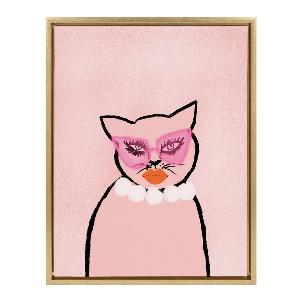 Sometimes kitties like to be glamorous too! Show off your unique love of glam decor and feline friends with this awesome print by Kendra Dandy of Bouffants and Broken Hearts Displayed in a sleek modern frame, these fun, contemporary designs make for a vibrant statement to any room. Framed in the USA in Waunakee, Wisconsin, this floating canvas art will be a pleasure to look at every day in your living room, bedroom, nursery, or any room in the home. Printed on gallery-wrapped canvas and framed with a lightweight polystyrene frame, this wall art has two hangers already attached to the MDF back for easy wall display. The outer dimensions are 18 inches tall by 24 inches wide by 1.6 inches deep. About the Artist: Kendra Dandy is a talented illustrator from Philidelphia, PA, most known for the brand Bouffants & Broken Hearts. Kendra discovered surface design while trying to find a way to be involved in the fashion world. Today her work graces many products from apparel to home goods. Her most loved influences are nature themes, fashion, makeup, the 50s and 60s, junk food, and animals. Other collaborations include Vans, Sephora Bobbi Brown, Estee Lauder, and Nike.