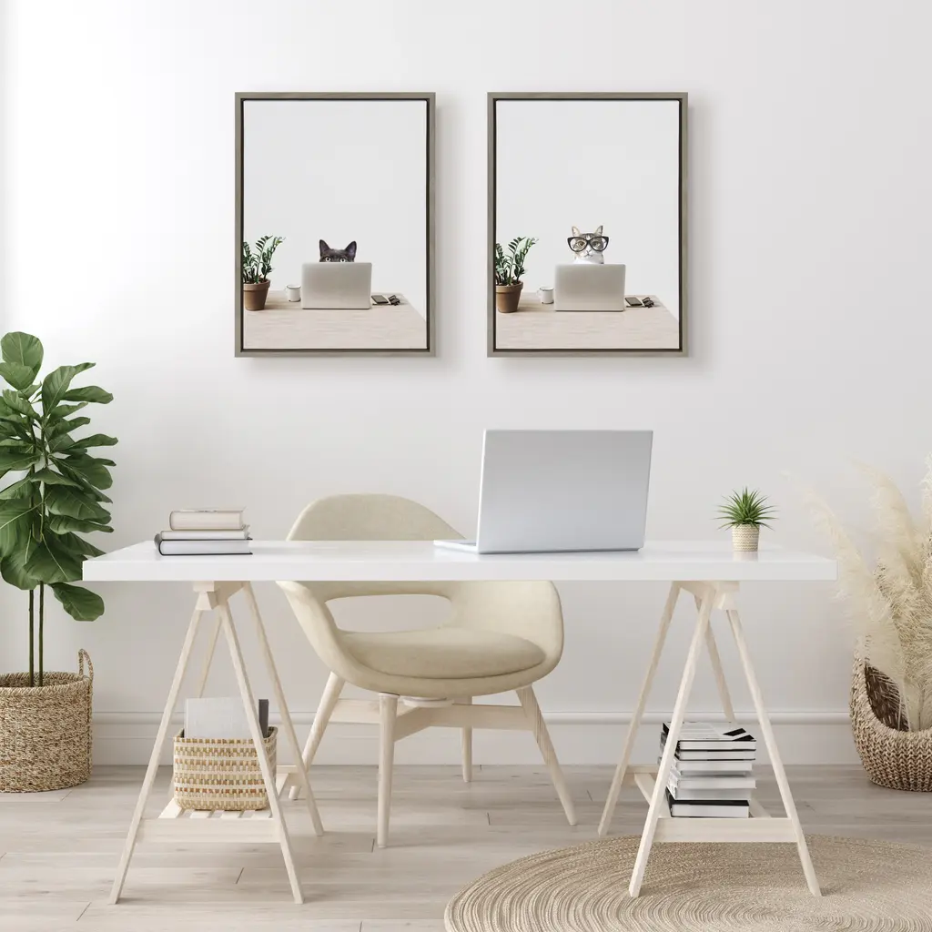 "I like numbers…a lot, probably more than cat nip. My coworkers call me the financial wizard because of my impressive knowledge." Where ever your office is, The Creative Bunch studio has created the perfect office art for your space. Add one or multiple animals to your walls to create the most fun whimsical environment. Framed in the USA in Waunakee, Wisconsin, this floating canvas art will be a pleasure to look at every day in your living room, bedroom, nursery, or any room in the home. This art print also makes an excellent gift for birthdays, holidays, or house-warming parties. Printed on gallery-wrapped canvas and framed with a lightweight polystyrene frame, this wall art has two hangers already attached to the MDF back for easy wall display. The outer dimensions are 24 inches by 18 inches by 1.63 inches. Print Name: "I'm Cathy, I work in Accounting"