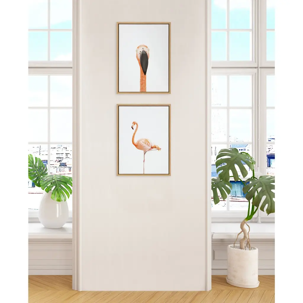 Kate And Laurel Sylvie Flamingo Standing Framed Canvas By Amy Peterson Art Studio - 18x24 - Brown