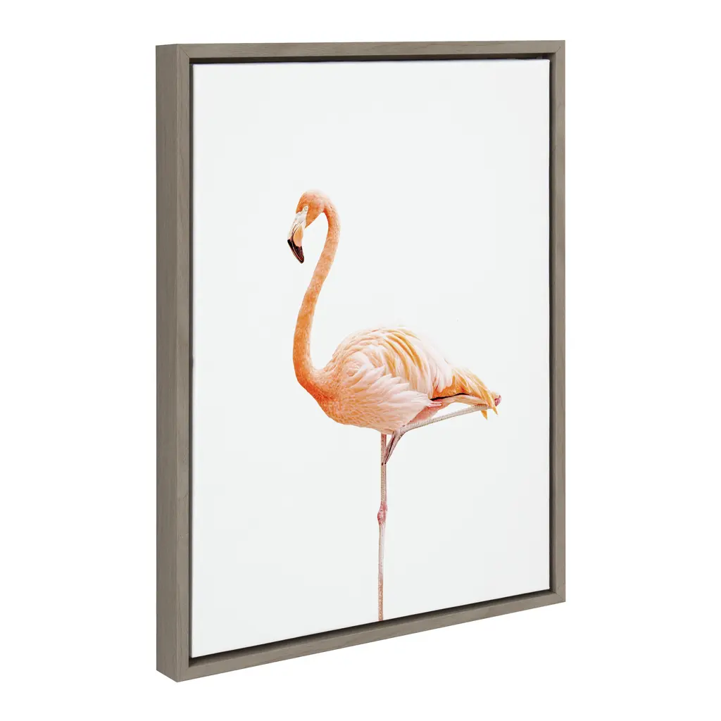 Provide your space with some whimsical appeal with this farm sheep portrait. This lovely, light piece by Amy Peterson Art Studio is perfect for any animal lover. Framed in the USA in Waunakee, Wisconsin, this floating canvas art will be a pleasure to look at every day in your living room, bedroom, nursery, or any room in the home. This art print also makes an excellent gift for birthdays, holidays, or house-warming parties. Printed on gallery-wrapped canvas and framed with a lightweight polystyrene frame, this wall art is easy to display on the wall. The outer dimensions are 18 inches by 24 inches by 1.6 inches. Print Name: "Flamingo Standing"