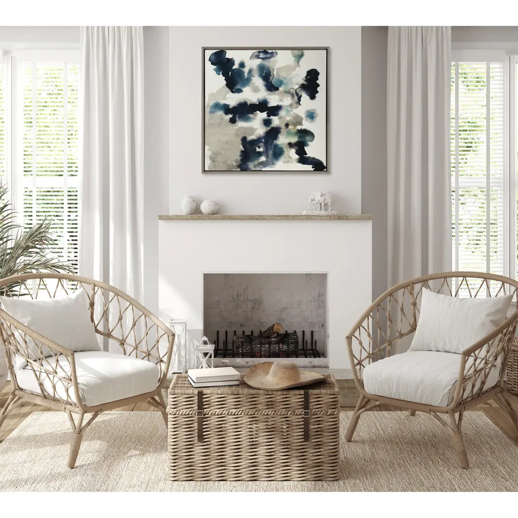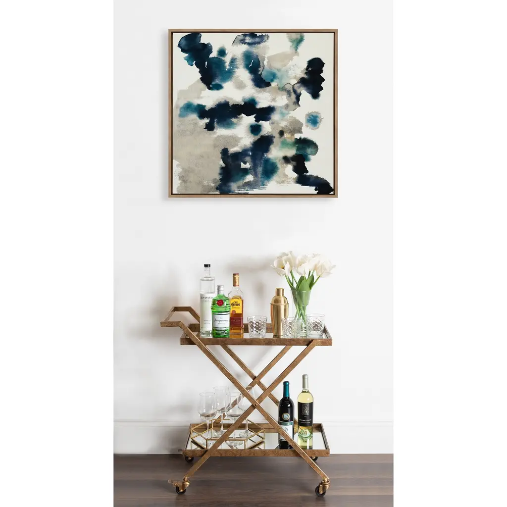 Create an enigmatic aesthetic in your home that exudes modern minimalist sophistication with this abstract art piece. Framed in the USA in Waunakee, Wisconsin, this floating canvas art will be a pleasure to look at every day in your living room, bedroom, nursery, or any room in the home. This art print also makes an excellent gift for birthdays, holidays, or house-warming parties. Printed on gallery-wrapped canvas and framed with a lightweight polystyrene frame, this wall art is easy to display on the wall. The outer dimensions are 30 inches by 30 inches by 1.6 inches. Print Name: "Gilded Watercolor"
