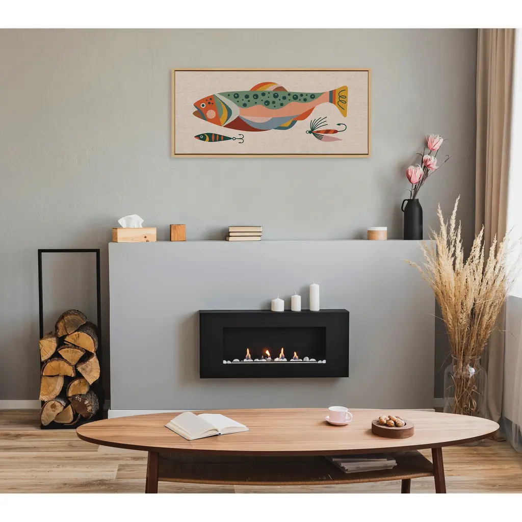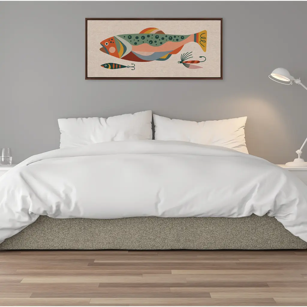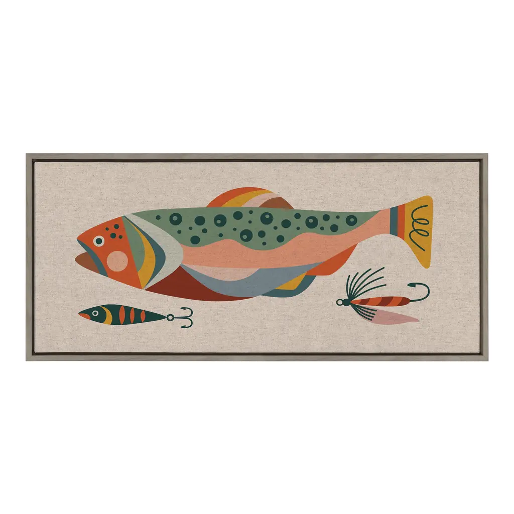 Brighten up your living space with this colorful fish illustration by Rachel Lee of My Dream Wall. Perfect for adding a splash of color and personality to any room in your home, this print is sure to become a beloved element of your home decor. Framed in the USA in Waunakee, Wisconsin, this modern floating canvas art is sure to bring joy to your space. Our design team curates art that will fit perfectly in any room of your home. Showcase this art in your living room, bedroom, home office, kitchen, bathroom, nursery, or anywhere you want to bring a little beauty and charm to your walls. Specializing in home décor, we are continually bringing timeless works of art for the traditional decorator as well as trend-forward pieces for that eclectic art lover. Our high-quality framed canvas art also makes excellent gifts for birthdays, holidays, or housewarming parties. Printed on gallery-wrapped canvas and framed with a simple gallery frame this wall art is easy to display on the wall and will match with any décor style. The outer dimensions are 18 inches by 40 inches by 1.6 inches. Print Name: "Gone Fishing Neutral Linen Texture"