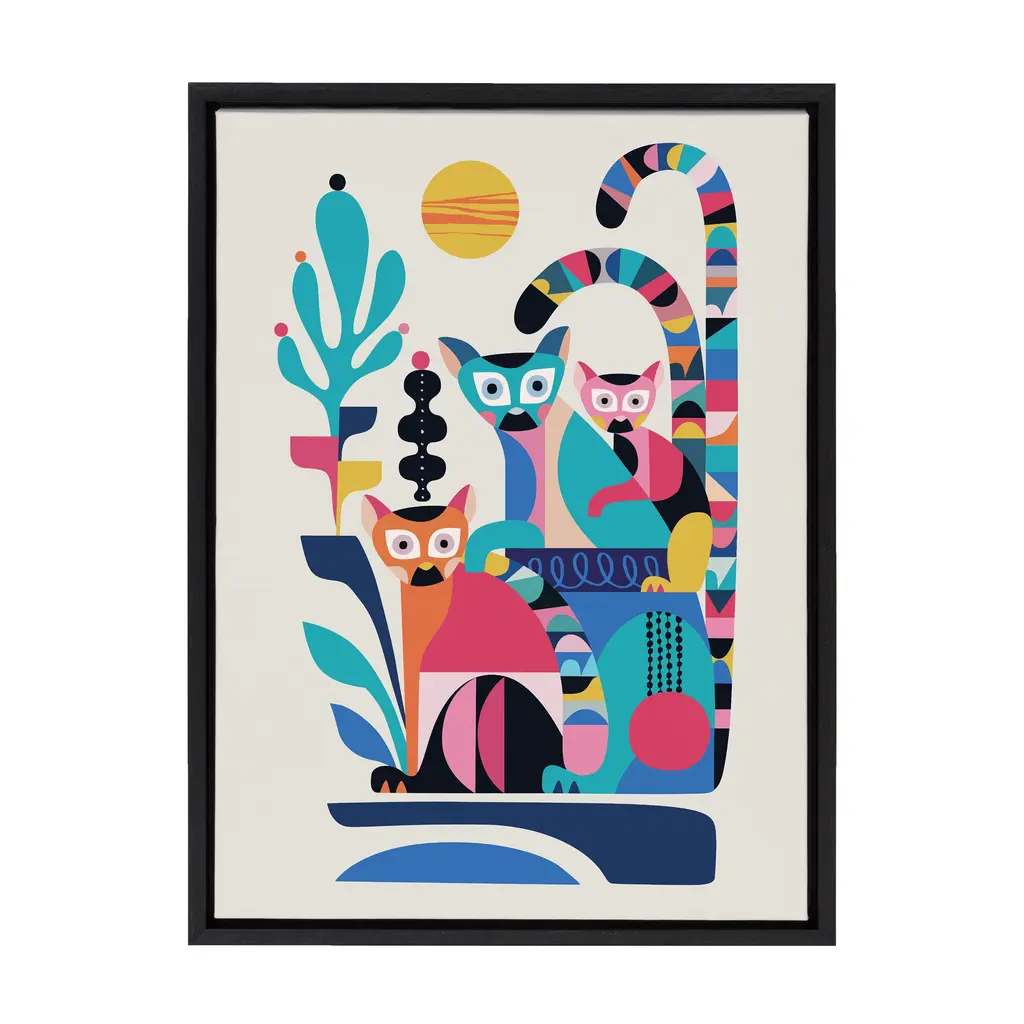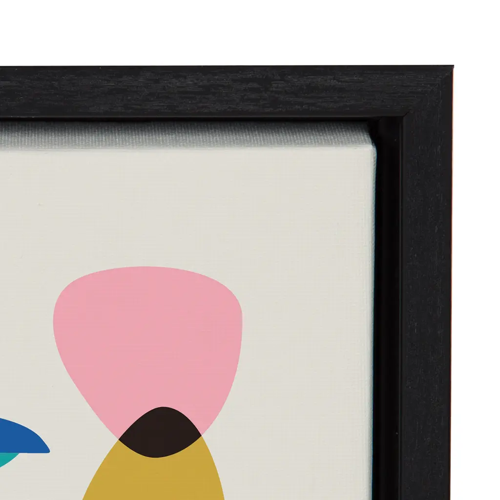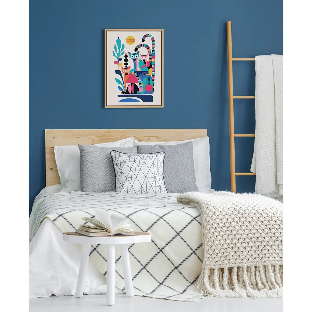 Are you a lover of lemurs and mid-century style? Check out this vibrant mid-century-inspired art print by Rachel Lee! Framed in the USA in Waunakee, Wisconsin, this floating canvas art will be a pleasure to look at every day in your living room, bedroom, nursery, or any room that needs a pop of mid-century style. This art print also makes an excellent gift for birthdays, holidays, or house-warming parties. Printed on gallery-wrapped canvas and framed with a lightweight polystyrene frame, this wall art has two hangers already attached to the MDF back for easy wall display. The outer dimensions are 24 inches tall by 18 inches wide by 1.63 inches deep. Print Name: "Mid Century Modern Lemur"