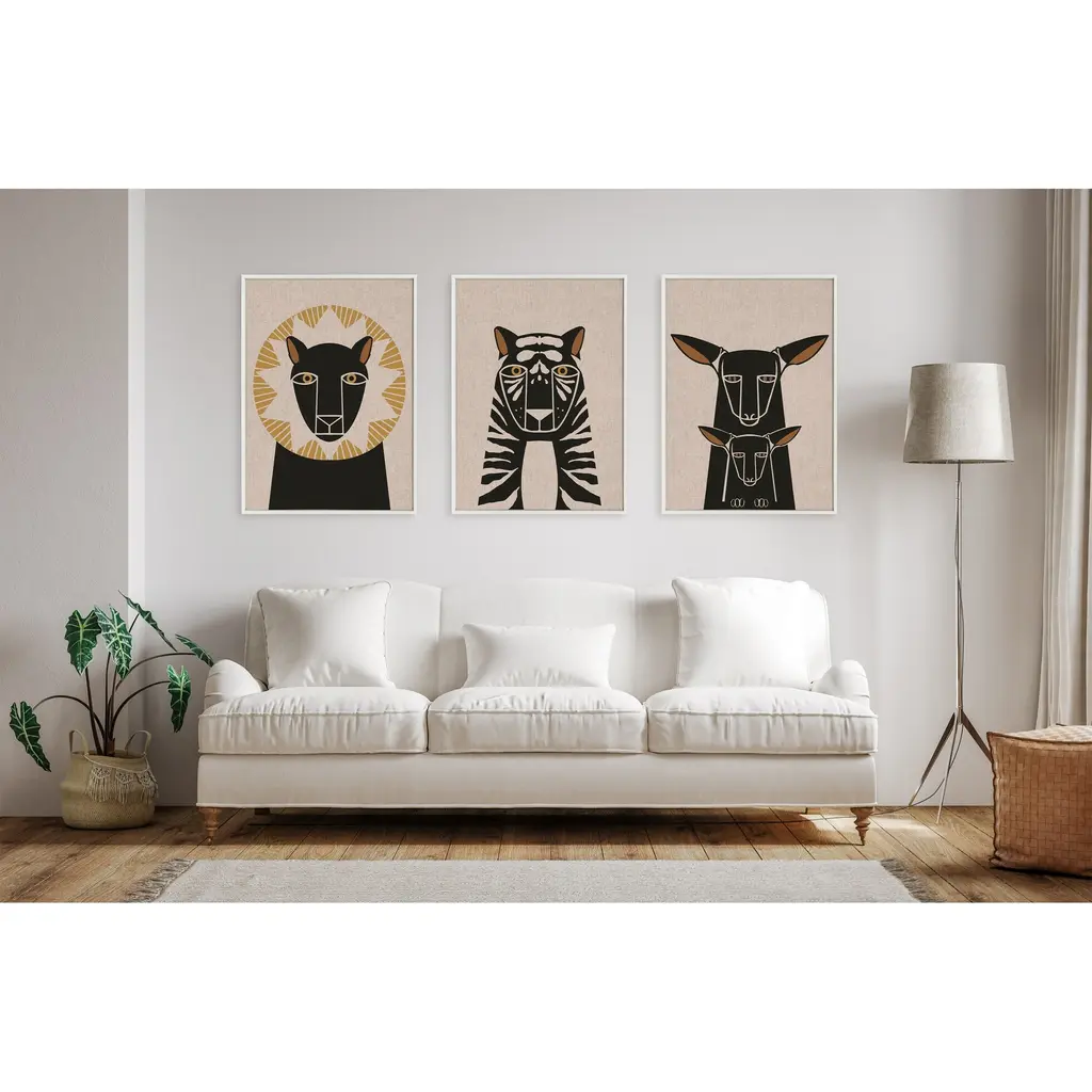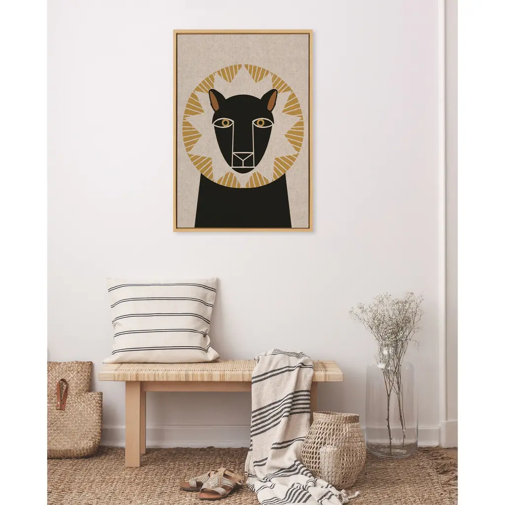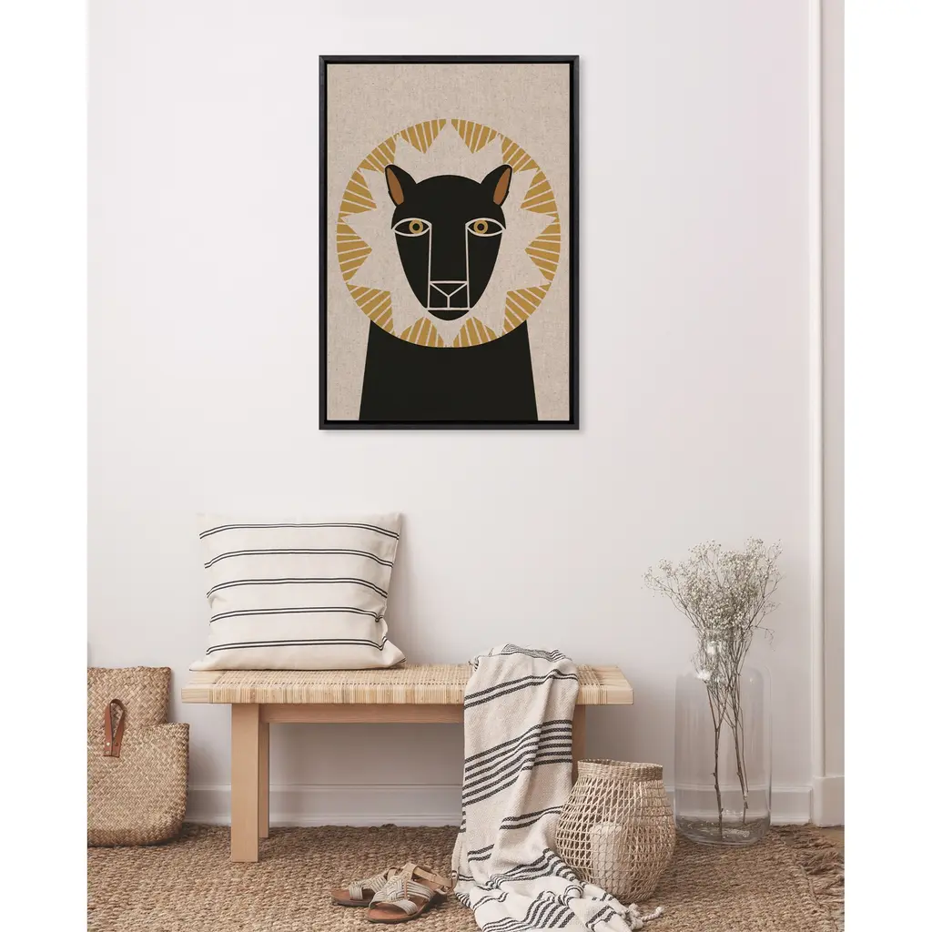 Fill your space with a charming patterned lion illustration from Hannah Beisang. This piece is great for that friend of yours who is a big animal lover. Framed in the USA in Waunakee, Wisconsin, this modern floating canvas art is sure to bring joy to your space. Our design team curates art that will fit perfectly in any room of your home. Showcase this art in your living room, bedroom, home office, kitchen, bathroom, nursery, or anywhere you want to bring a little beauty and charm to your walls. Specializing in home décor, we are continually bringing timeless works of art for the traditional decorator as well as trend-forward pieces for that eclectic art lover. Our high-quality framed canvas art also makes excellent gifts for birthdays, holidays, or housewarming parties. Printed on gallery-wrapped canvas and framed with a simple gallery frame this wall art is easy to display on the wall and will match with any décor style. The outer dimensions are 23 inches by 33 inches by 1.6 inches. Print Name: "Lion Profile Neutral Linen"