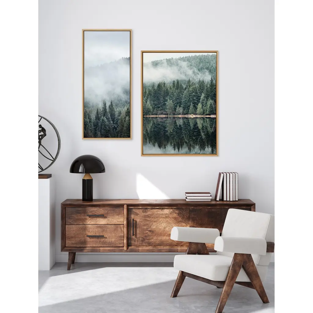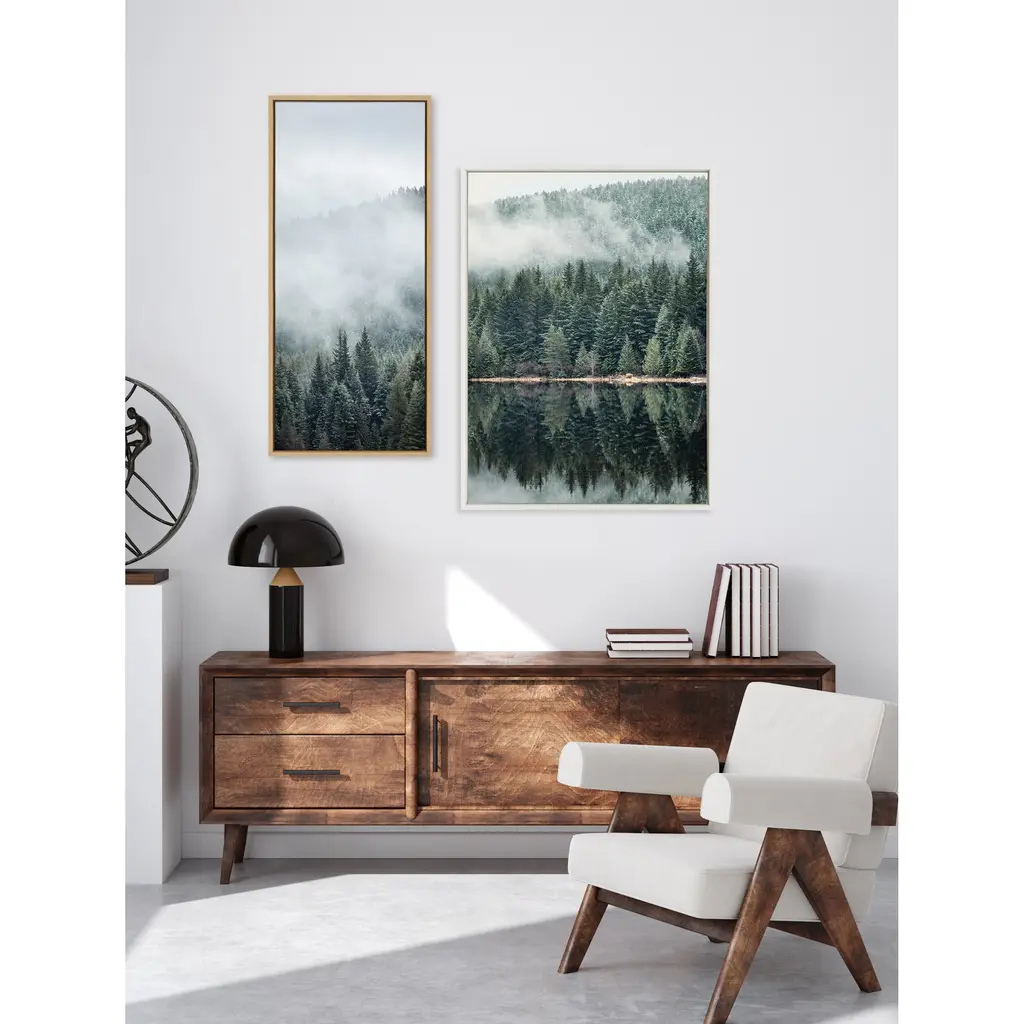 Embrace the smoky hills filled with trees in this lovely shot by Emiko and Mark Franzen of F2Images. This nature-inspired landscape art is the perfect way to capture the majesty of the forest on your wall! Framed in the USA in Waunakee, Wisconsin, this modern floating canvas art is sure to bring joy to your space. Our design team curates art that will fit perfectly in any room of your home. Showcase this art in your living room, bedroom, home office, kitchen, bathroom, nursery, or anywhere you want to bring a little beauty and charm to your walls. Specializing in home décor, we are continually bringing timeless works of art for the traditional decorator as well as trend-forward pieces for that eclectic art lover. Our high-quality framed canvas art also makes excellent gifts for birthdays, holidays, or housewarming parties. Printed on gallery-wrapped canvas and framed with a simple gallery frame this wall art is easy to display on the wall and will match with any décor style. The outer dimensions are 28 inches by 38 inches by 1.6 inches. Print Name: "Misty Forest"