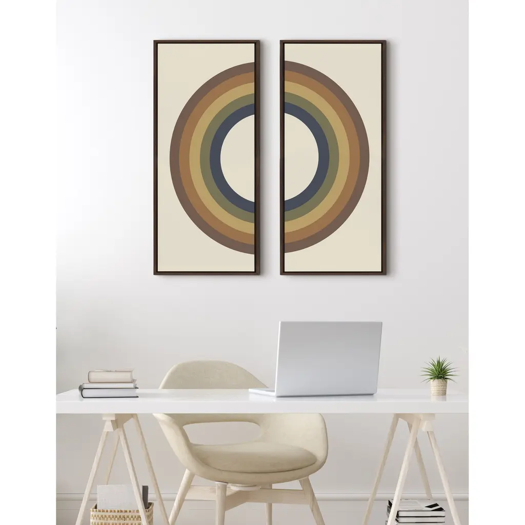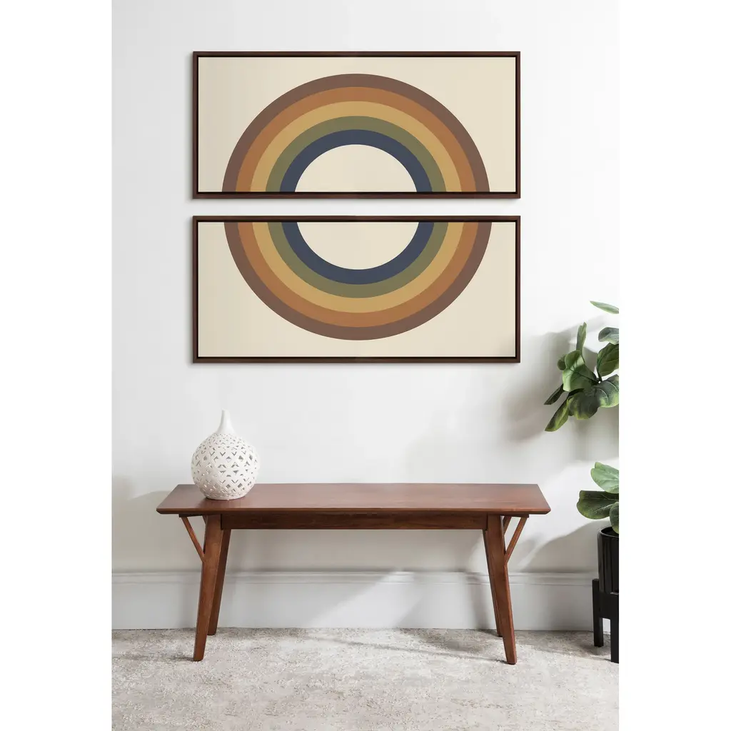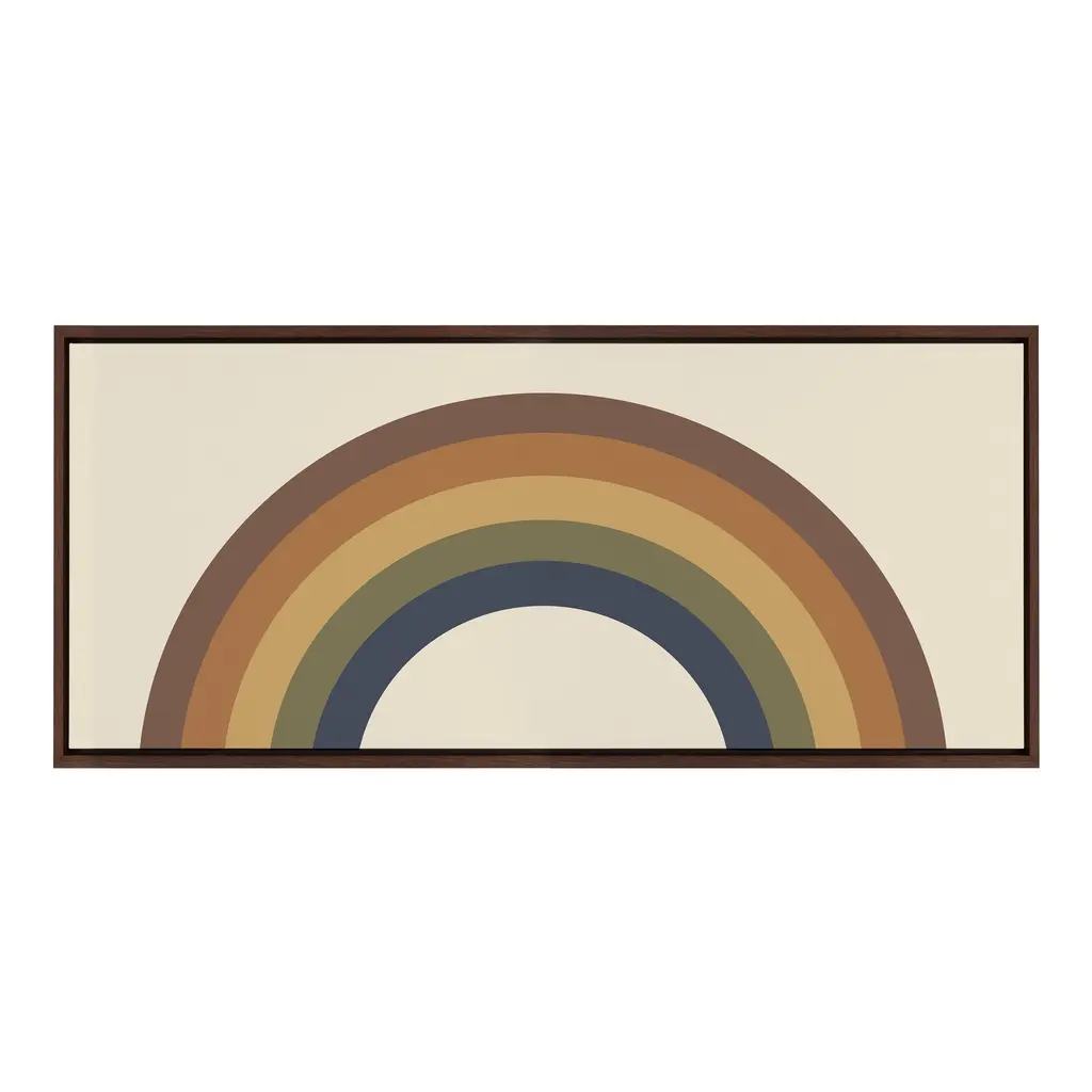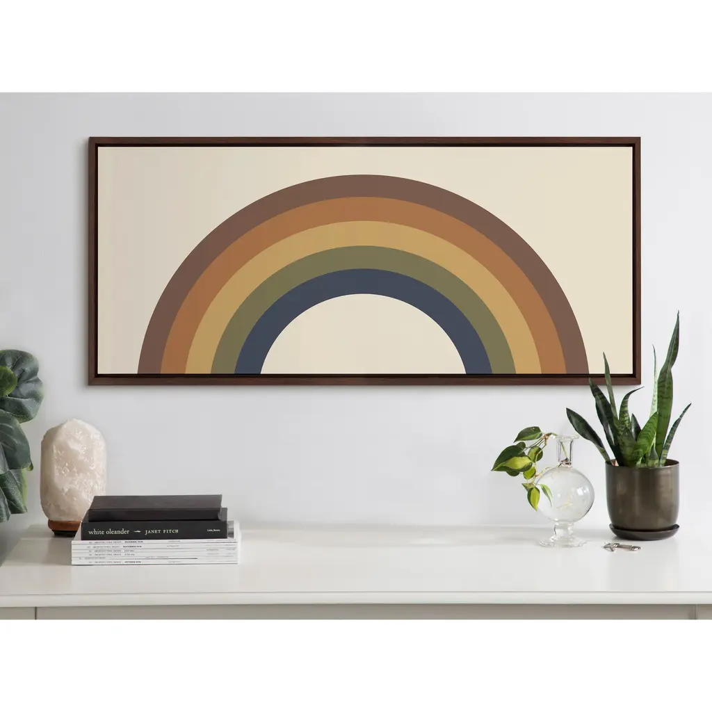 Decorate your walls with every color of the rainbow with this vintage-inspired art print that hangs multiple ways! Framed in the USA in Waunakee, Wisconsin, this floating canvas art will be a pleasure to look at every day in your living room, bedroom, office, or any room in the home. This art print also makes an excellent gift for birthdays, holidays, or housewarming parties. Printed on gallery-wrapped canvas and framed with a lightweight polystyrene frame, this wall art has hangers already attached to the MDF back for easy wall display. The outer dimensions are 40 inches by 18 inches by 1.62 inches. Print Name: "Retro Rainbow"