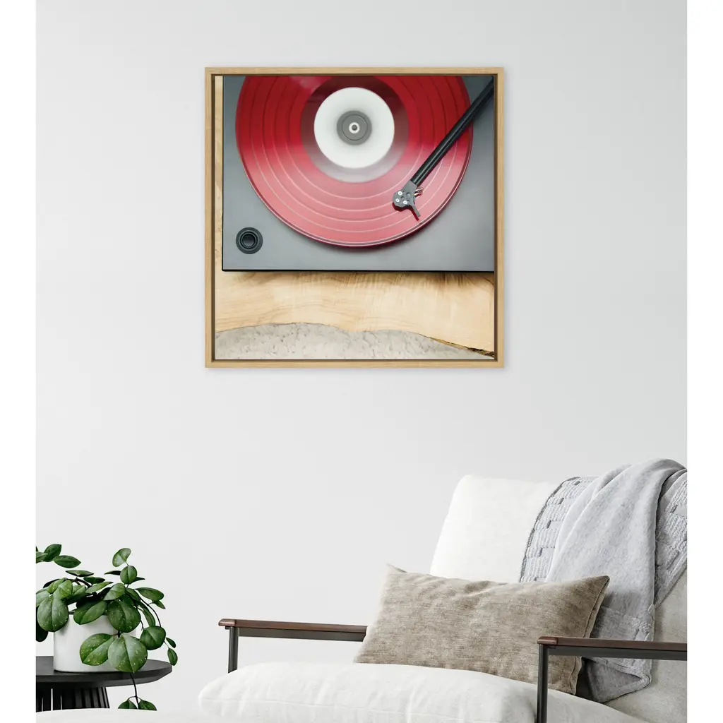 Add a touch of vintage music photography to your walls with this colorful vinyl vibes art by Emiko and Mark Franzen. Perfect for a unique statement piece. Framed in the USA in Waunakee, Wisconsin, this modern floating canvas art is sure to bring joy to your space. Our design team curates art that will fit perfectly in any room of your home. Showcase this art in your living room, bedroom, home office, kitchen, bathroom, nursery, or anywhere you want to bring a little beauty and charm to your walls. Specializing in home décor, we are continually bringing timeless works of art for the traditional decorator as well as trend-forward pieces for that eclectic art lover. Our high-quality framed canvas art also makes excellent gifts for birthdays, holidays, or housewarming parties. Printed on gallery-wrapped canvas and framed with a simple gallery frame this wall art is easy to display on the wall and will match with any décor style. The outer dimensions are 22 inches by 22 inches by 1.6 inches. Print Name: "Vinyl Vibes Color"