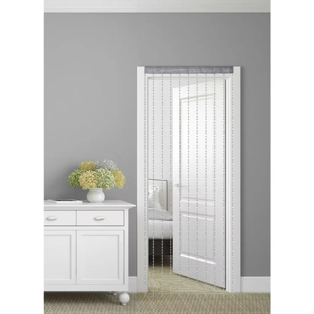 Kate Aurora Luxurious Jaeger Rod Pocket Acrylic Beaded Single Window Curtain Panel - 40 In. W X 84 In. L - Silver