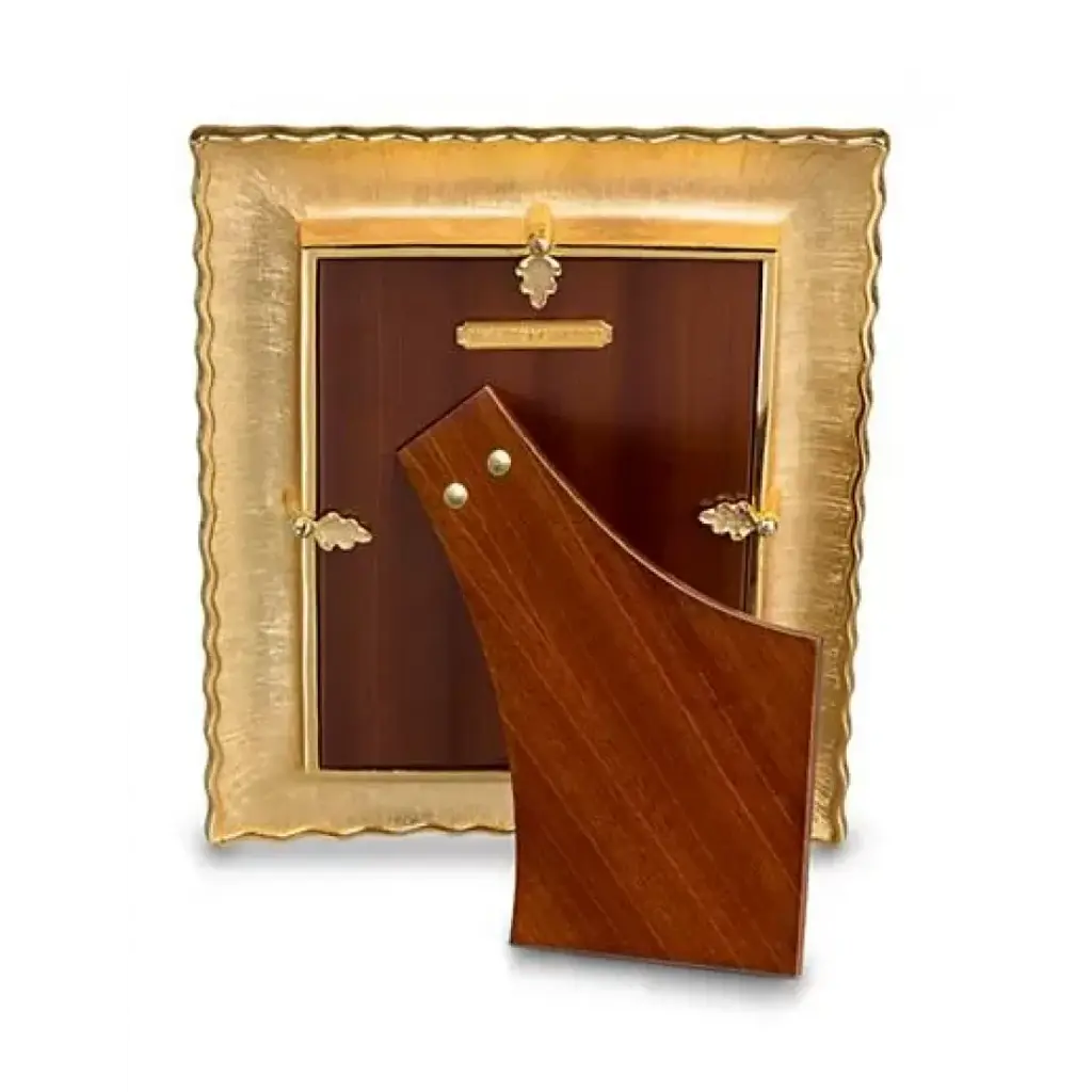 Sunlight glistens on our Katerina Ruffle Edge Floral 5" x 7" Frame, allowing the jeweler’s craft of hand carved textures and hand-polished details to shine. Pewter metal is finished in 18K gold at our Rhode Island workshop. The unadorned frame has a polished mahogany wooden back from Spain.