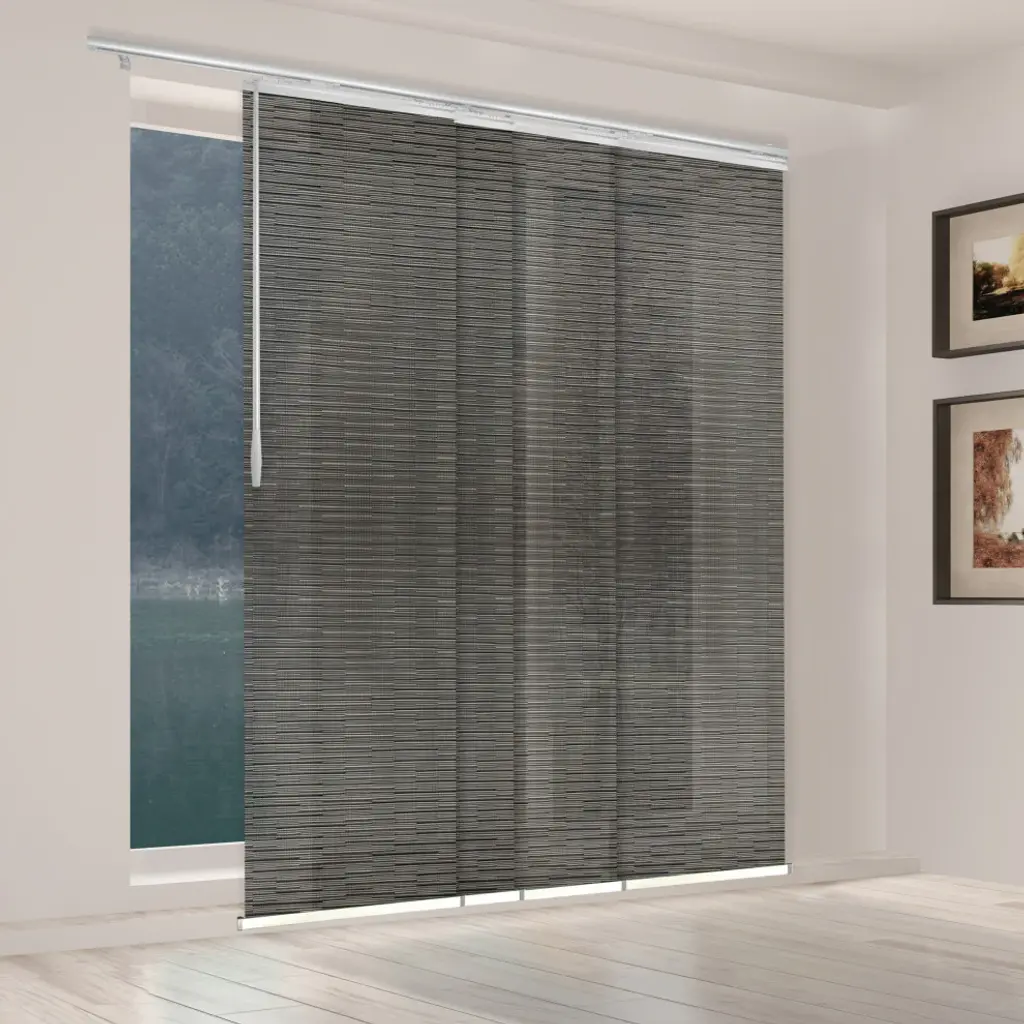 Central Design Products is pleased to introduce a new innovative panel track that offers easy 2-way installation, adding an alluring style and refined touch to your home decor. The single rail design of the track is sleek, compact, and reduces the overall footprint and weight of the installation, eliminating bulky, intrusive window treatments. Adjusting the panel height is a breeze � simply trim the panel, re-attach the liner, and install the panel weight. Detailed instructions are included.The panel track also features a patented slider design, made with aluminum and fitted with bearings that allow for durable and smooth operation. The sliders are stacked closer together than conventional panel tracks, reducing light bleed coming from the gaps between panels. This track has endless uses from dividing rooms, garages, offices, and closets to decorating windows and patios. Available in larger sizes including 8, 10, and 12 panels. Extends from 48-88� wide. Each panel measures 23.5" wide and 91.5" tall, with a total installation height of 94" (includes the 2.5" rail track). The track can be wall or ceiling mounted. The panels can stack on the left or the right. The clearance from the wall is extendable from 1.25� to 3.25� and projection from the wall is extendable from 3� to 4.25�. Kato panel is made from 69% Vinyl 31% Polyester, with a light filtering shade that blocks 50% of the light.