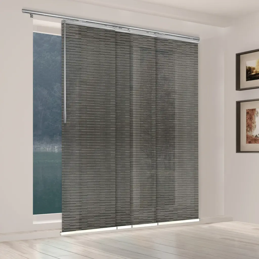 Central Design Products is pleased to introduce a new innovative panel track that offers easy 2-way installation, adding an alluring style and refined touch to your home decor. The single rail design of the track is sleek, compact, and reduces the overall footprint and weight of the installation, eliminating bulky, intrusive window treatments. Adjusting the panel height is a breeze � simply trim the panel, re-attach the liner, and install the panel weight. Detailed instructions are included.The panel track also features a patented slider design, made with aluminum and fitted with bearings that allow for durable and smooth operation. The sliders are stacked closer together than conventional panel tracks, reducing light bleed coming from the gaps between panels. This track has endless uses from dividing rooms, garages, offices, and closets to decorating windows and patios. Available in larger sizes including 8, 10, and 12 panels. Extends from 48-88� wide. Each panel measures 23.5" wide and 91.5" tall, with a total installation height of 94" (includes the 2.5" rail track). The track can be wall or ceiling mounted. The panels can stack on the left or the right. The clearance from the wall is extendable from 1.25� to 3.25� and projection from the wall is extendable from 3� to 4.25�. Kato panel is made from 69% Vinyl 31% Polyester, with a light filtering shade that blocks 50% of the light.