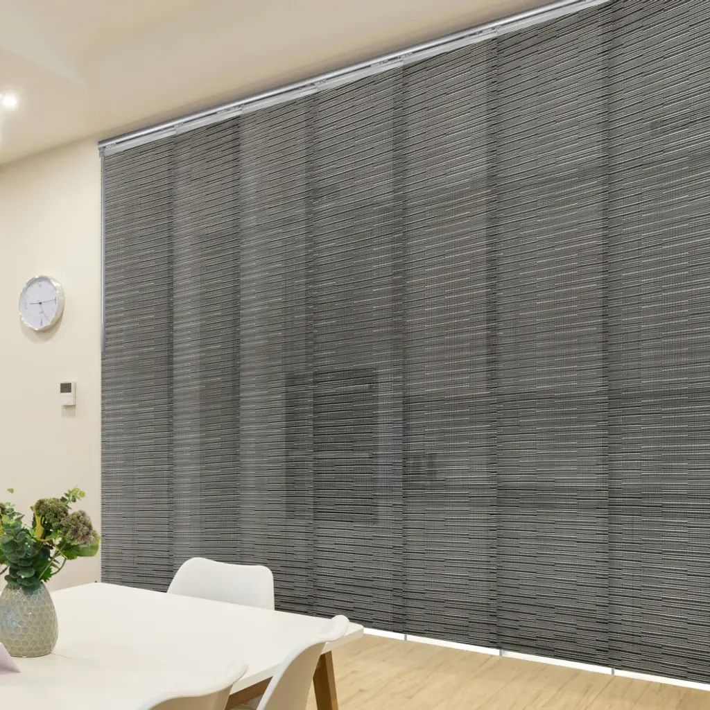 Central Design Products is pleased to introduce a new innovative panel track that offers easy 2-way installation, adding an alluring style and refined touch to your home decor. The single rail design of the track is sleek, compact, and reduces the overall footprint and weight of the installation, eliminating bulky, intrusive window treatments. Adjusting the panel height is a breeze � simply trim the panel, re-attach the liner, and install the panel weight. Detailed instructions are included.The panel track also features a patented slider design, made with aluminum and fitted with bearings that allow for durable and smooth operation. The sliders are stacked closer together than conventional panel tracks, reducing light bleed coming from the gaps between panels. This track has endless uses from dividing rooms, garages, offices, and closets to decorating windows and patios. Available in larger sizes including 8, 10, and 12 panels. Extends from 110-153� wide. Each panel measures 23.5" wide and 116" tall, with a total installation height of 118.5" (includes the 2.5" rail track). The track can be wall or ceiling mounted. The panels can stack on the left or the right. The clearance from the wall is extendable from 1.25� to 3.25� and projection from the wall is extendable from 3� to 4.25�. Kato panel is made from 69% Vinyl 31% Polyester, with a light filtering shade that blocks 50% of the light.
