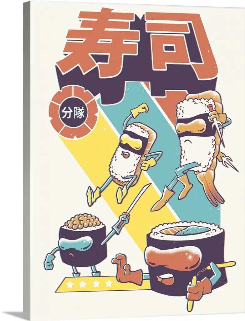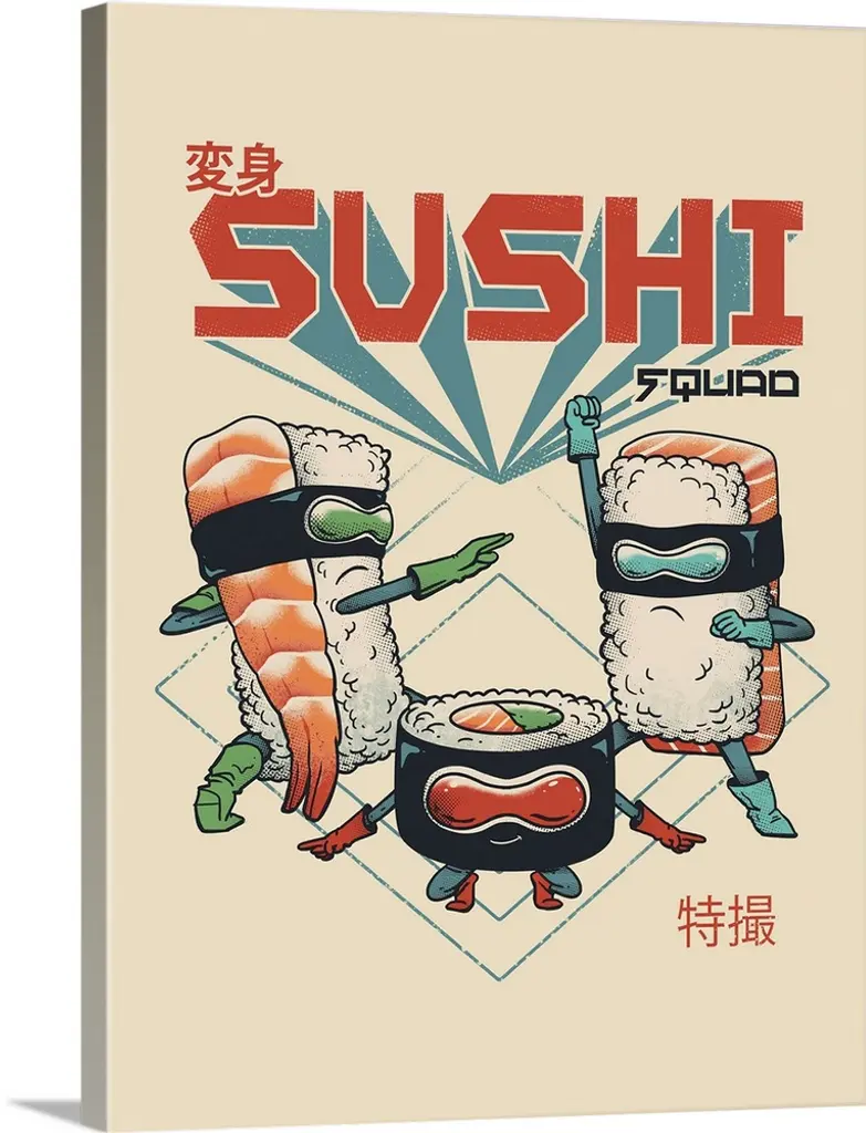Kawaii Sushi wall art for home and office decor. Discover canvas art prints, photos, mural, big canvas art and framed wall art in GreatBigCanvas.com's varied collections.