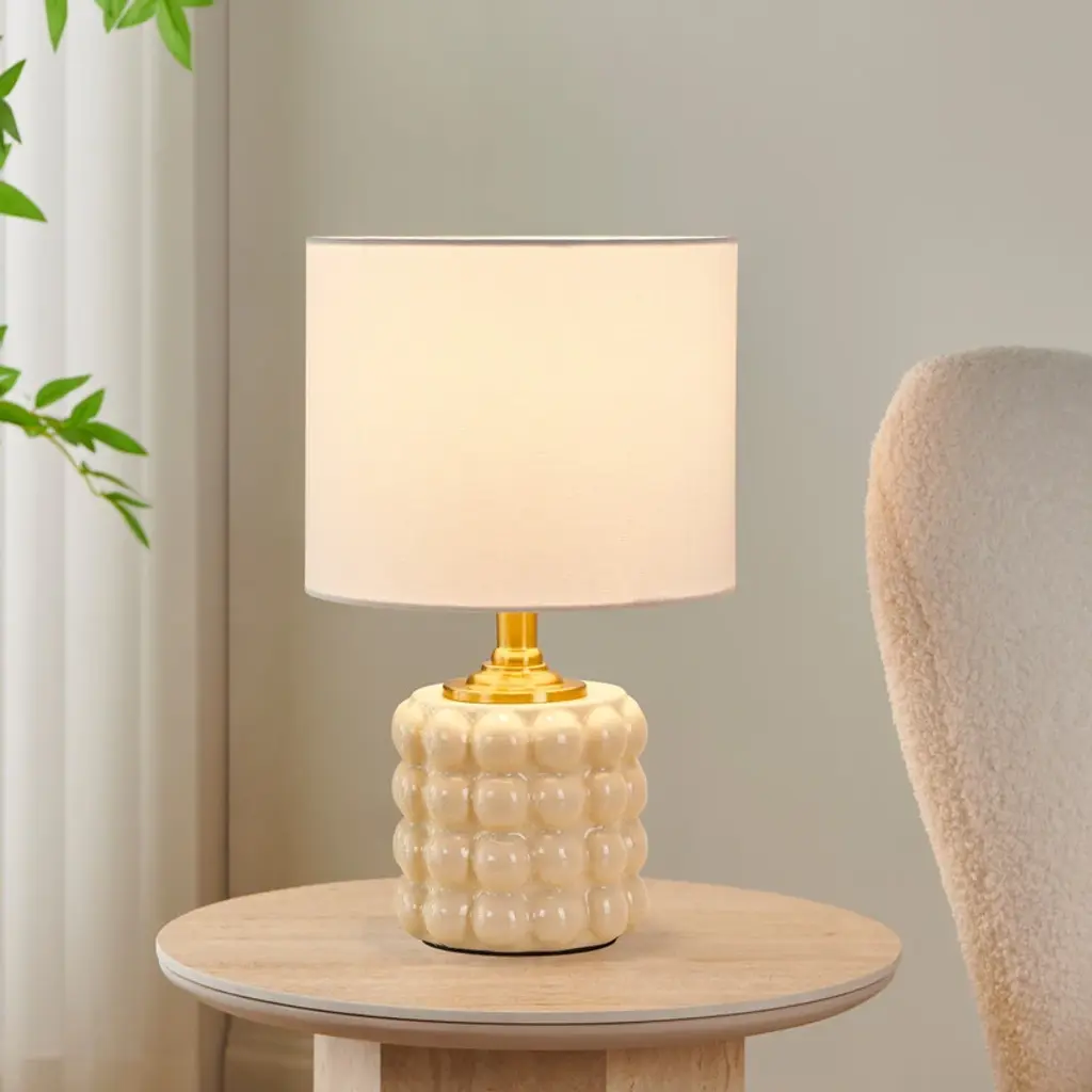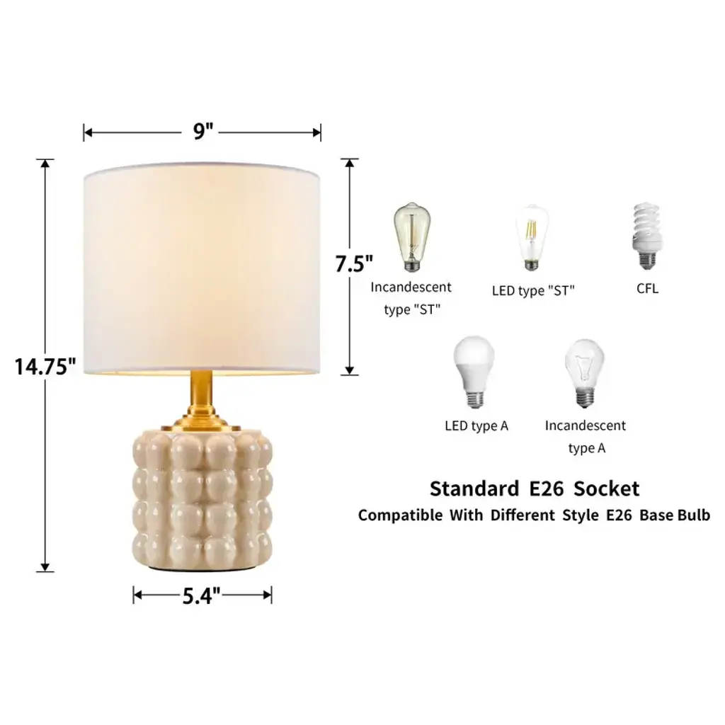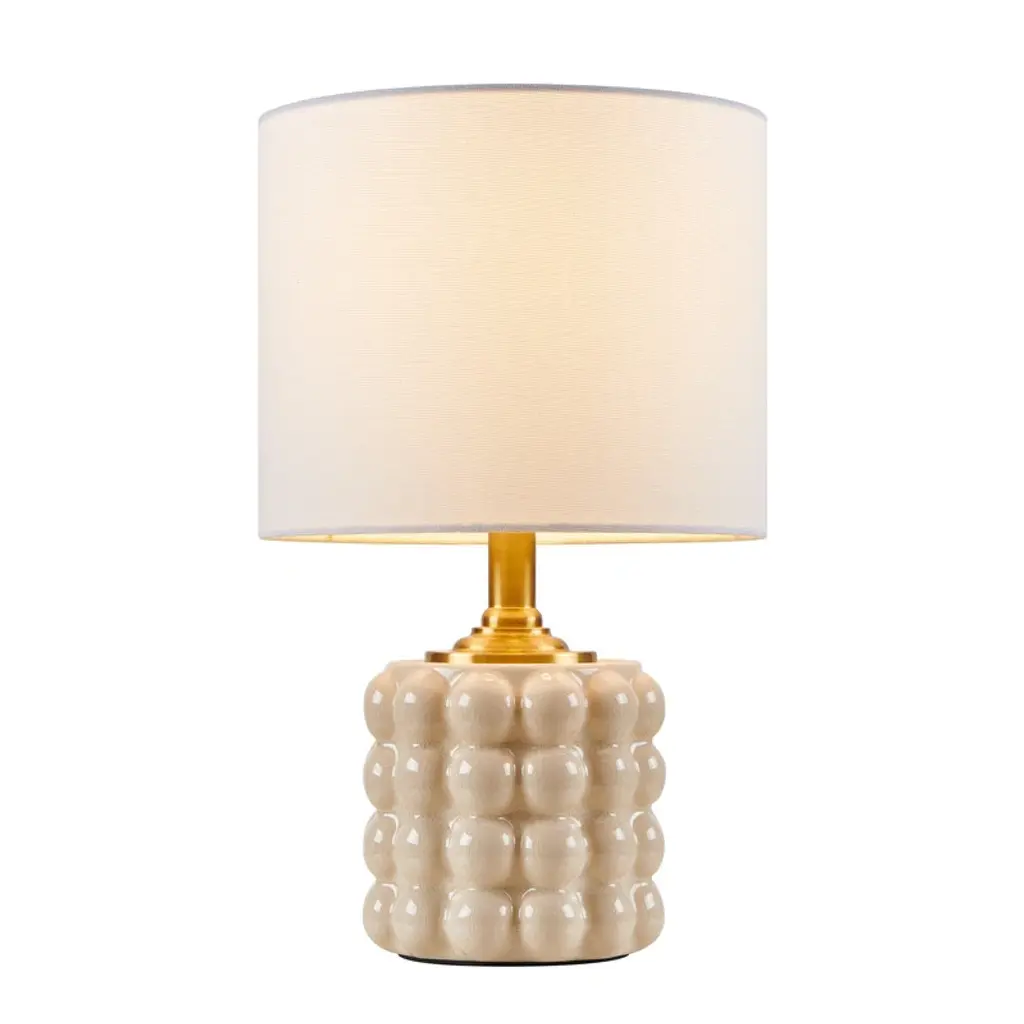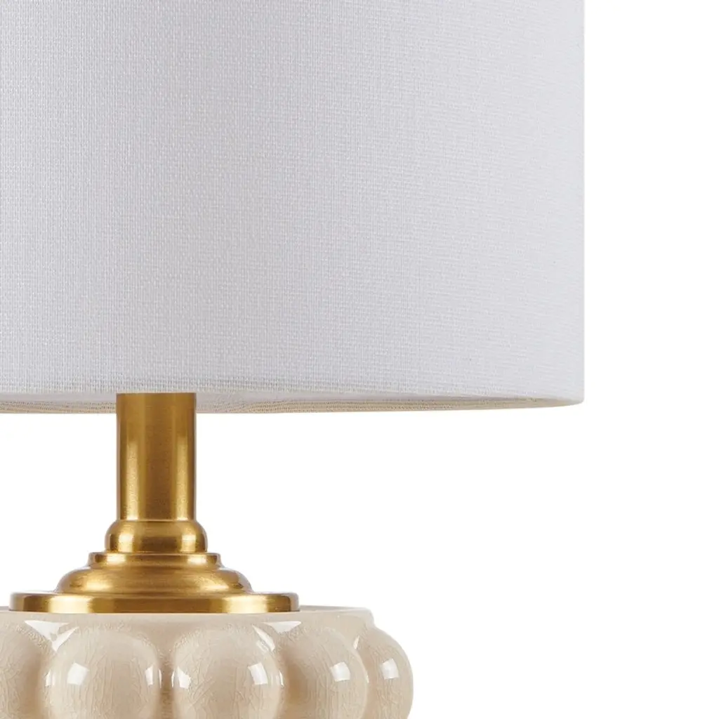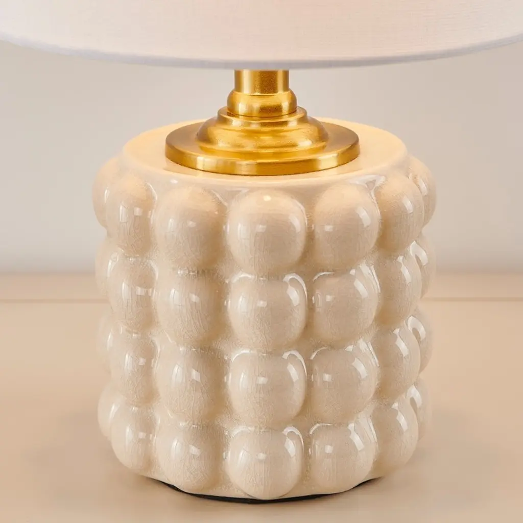 This small ceramic table lamp combines a warm classic profile with a delicate cracked texture and a cream finish to create a standout look. The well-regulated ceramic ball has cracks on the surface adding an element of texture to your home decor. This simple and cute design can be a good decoration for your living room or bedroom.Features: Dimension:Cleaning Note:
