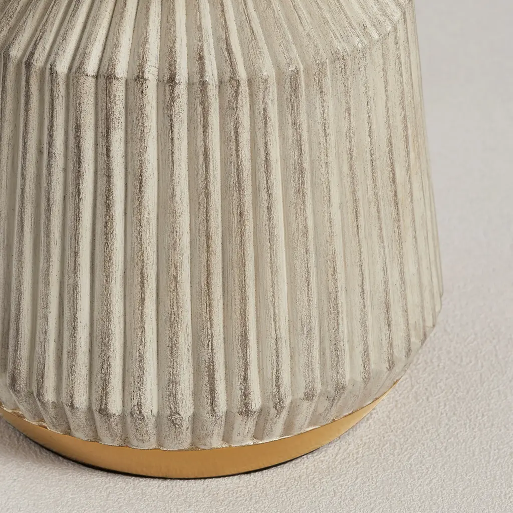 Add a touch of luxury and style to your space with this KAWOTI 21" Resin Table Lamp. The ribbed base with a gold finish and the bamboo pattern fabric lampshade with a highlighted base create a sumptuous vibe that will elevate any room. Choose between creamy white or dark green base to match your decor style. The lamp features a three-way switch for different levels of brightness and is compatible with E26 bulb base (bulbs not included). The lamp is easy to clean and maintain, making it a great addition to your vanity desk or any room in your home.Features:Dimensions:Product Care: