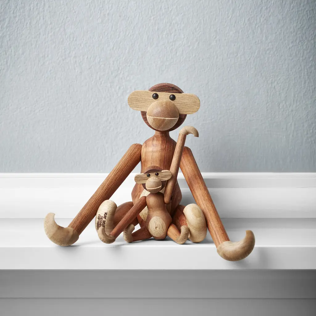 An iconic design, the Kay Bojesen Monkey was born in 1951. Since then, it has delighted kids and the young-at-heart in equal measure. Produced by Rosendahl, the beloved monkey toy is here to bring joy to a new generation of design lovers, regardless of their age. Full of personality and charm, the Kay Bojesen Monkey brightens living spaces with a playful character. Every monkey is crafted from plantation teak and limba wood, making each toy one of a kind. The limbs and the head are flexible, meaning that you can set this wood monkey in endless positions, even hanging it by a shelf or a hook. Great as a gift, the Rosendahl Kay Bojesen Monkey Teak/Limba comes in Mini, Small, Medium, and Large sizes.