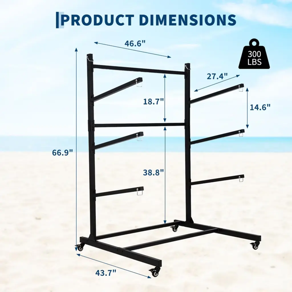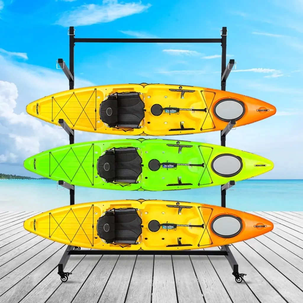 Kayak Storage Rack, Heavy Duty Kayak Racks For Outdoor Storage, Freestanding Kayak Storage Rack With Wheels For Kayaks, Canoes, 3 Layers