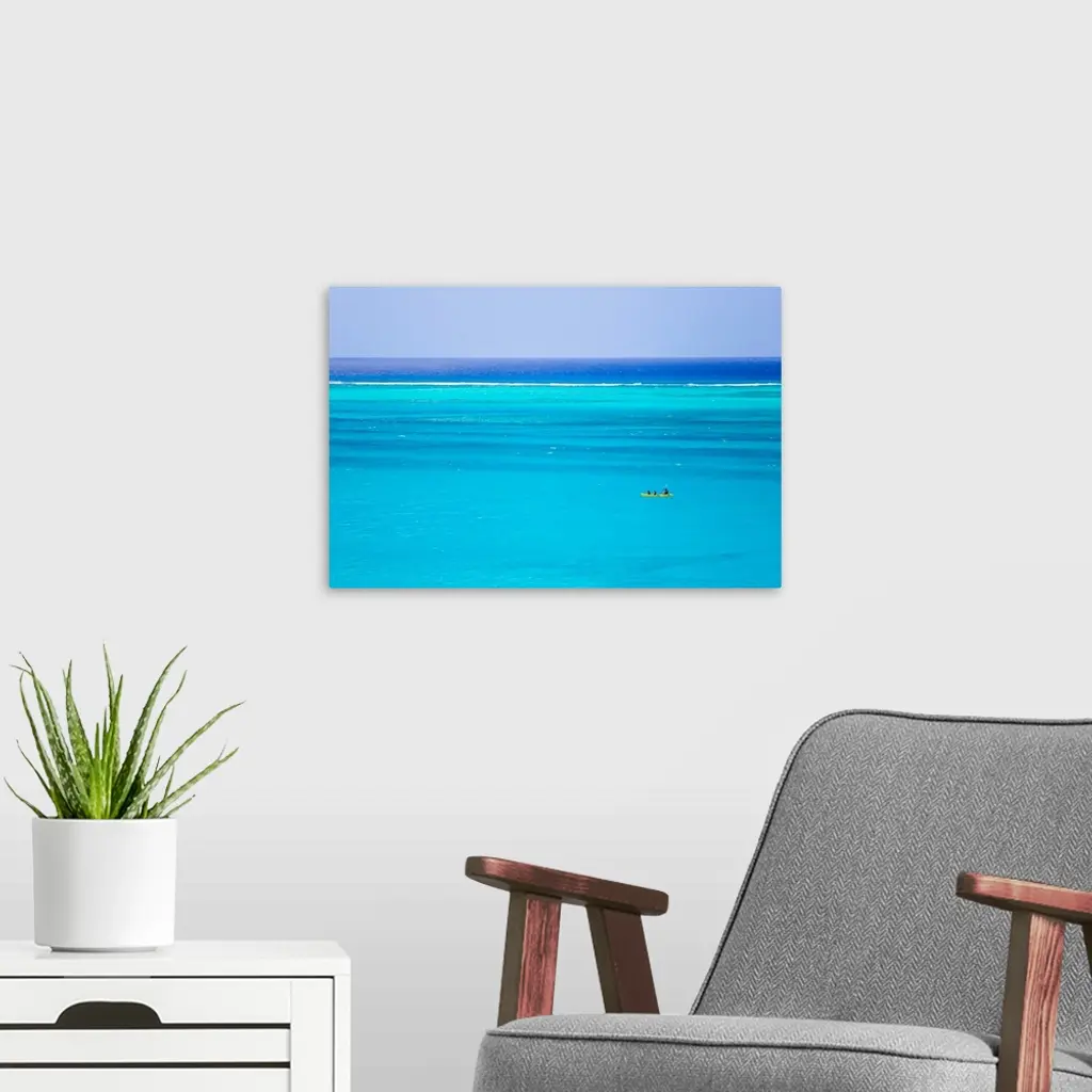 Kayakers in the turquoise waters of Grace Bay, in the Turks and Caicos Islands.