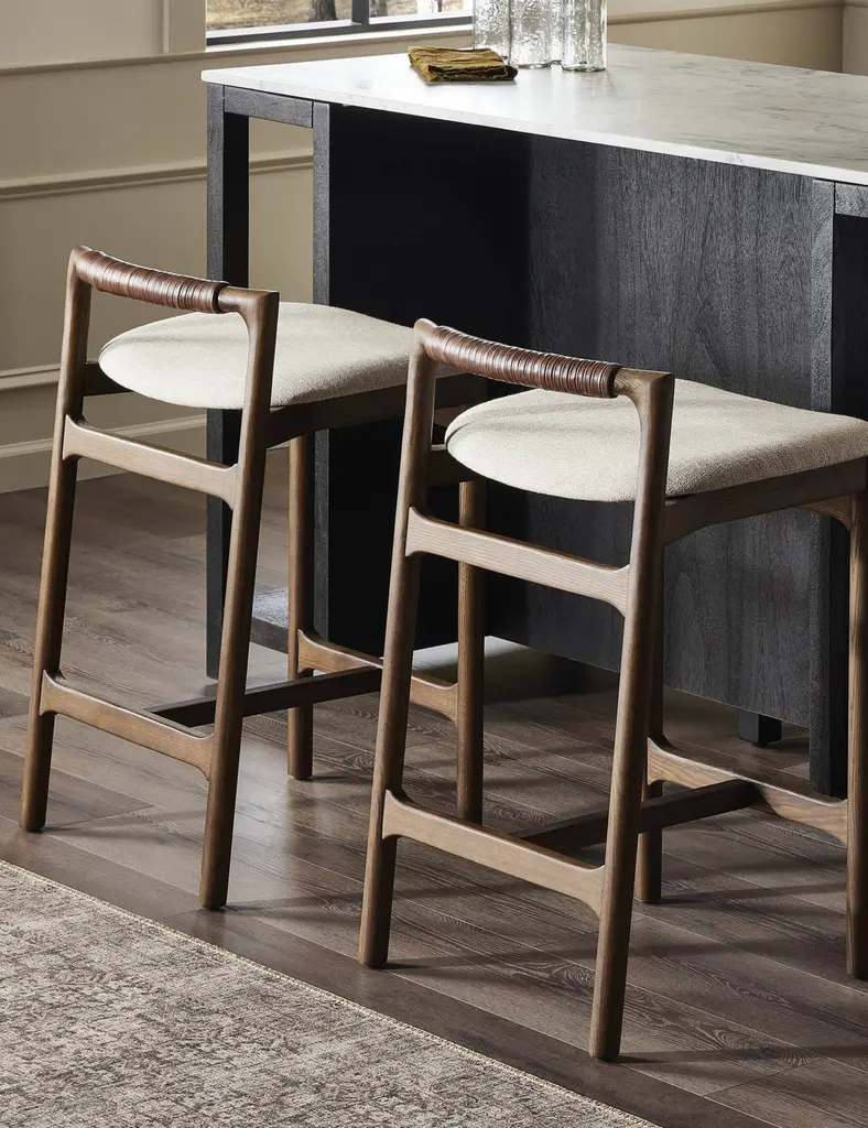 The Keeley stool features a tailored form with thoughtful details. The solid ash frame and mortise-and-tenon joinery showcase timeless craftsmanship, while the low back keeps the silhouette clean and compact. This stool brings a polished style to bar or counter seating.