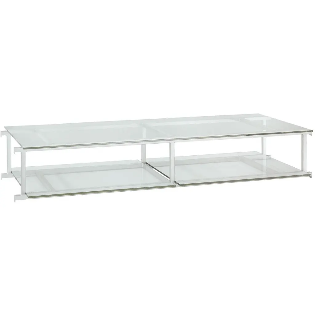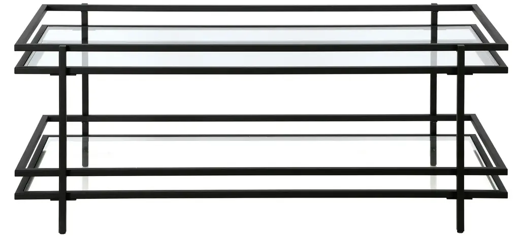 This Keelin Coffee Table is a designer must-have for today's celebrity-chic décor. Three tiers are ideal for storage or display, and glass and mirror shelves shine with glamorous depth that's perfectly balanced by Keelin's matte black frame.