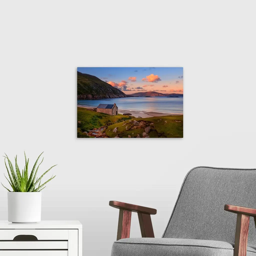Peaceful scene of a sunset on an Irish beach