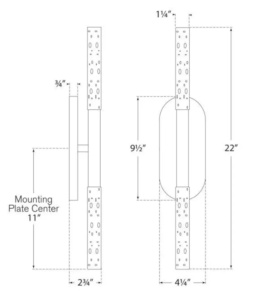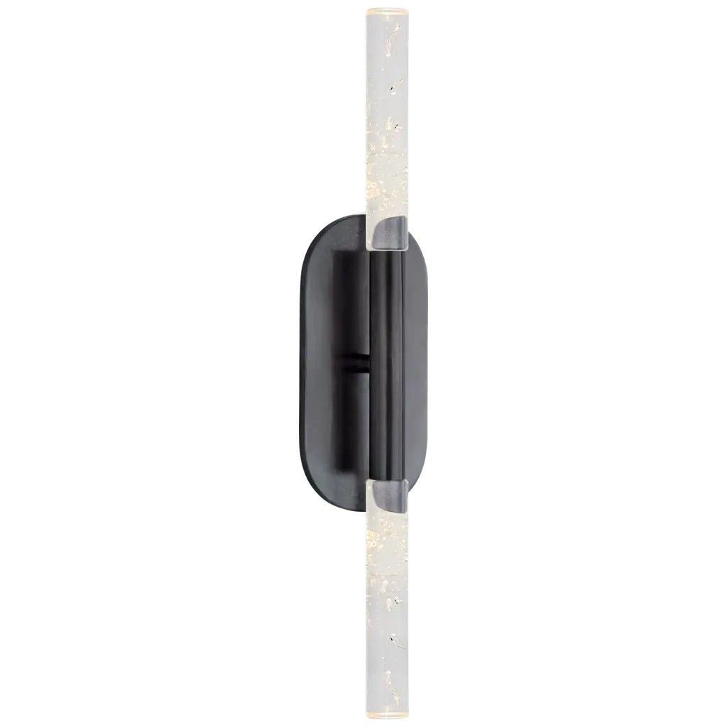 Rousseau Medium Vanity Sconce in Bronze with Seeded Glass Designer: Kelly Wearstler Height: 22" Extension: 2.75" Backplate: 4.25" x 9.5" Oval Mounting: Hardwire Shade Detail: Seeded Glass Socket: Dedicated LED Wattage: 9w (750lm) Safety Rating Location: DAMP