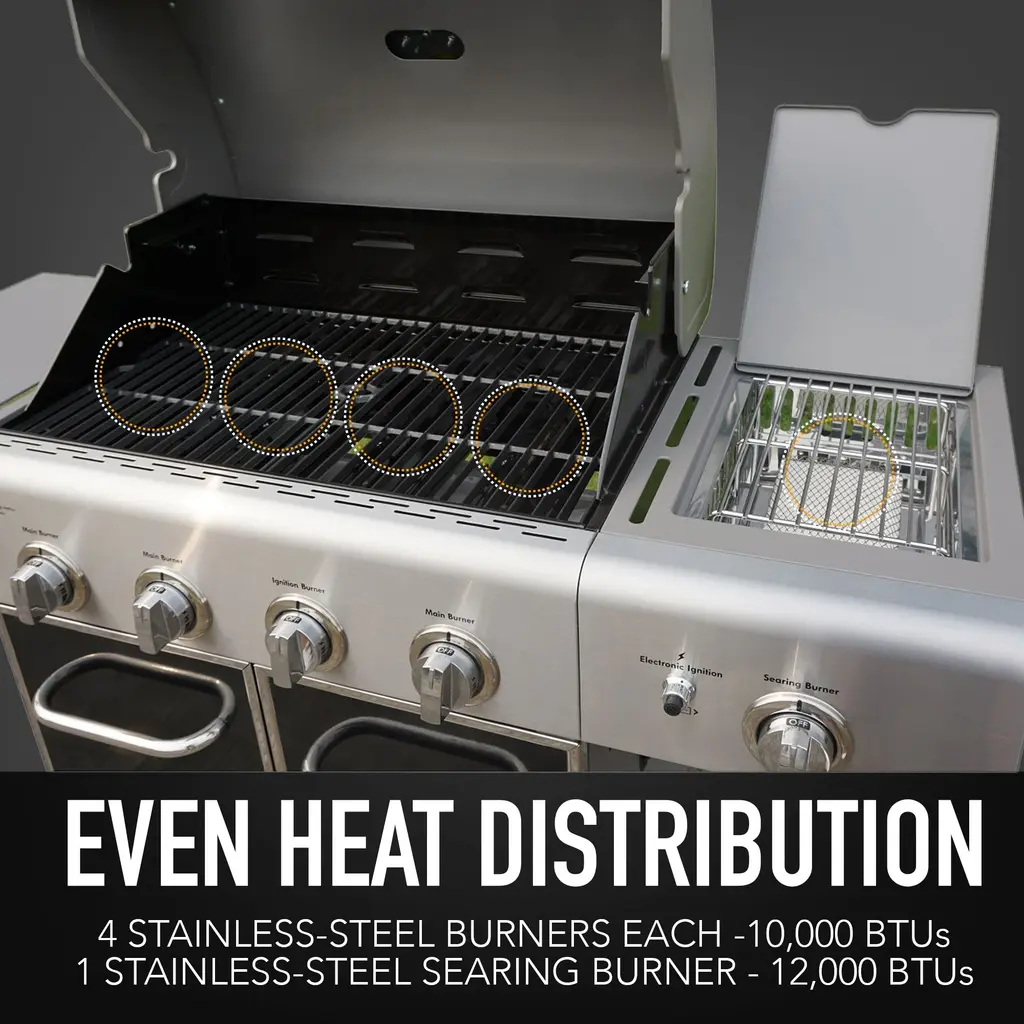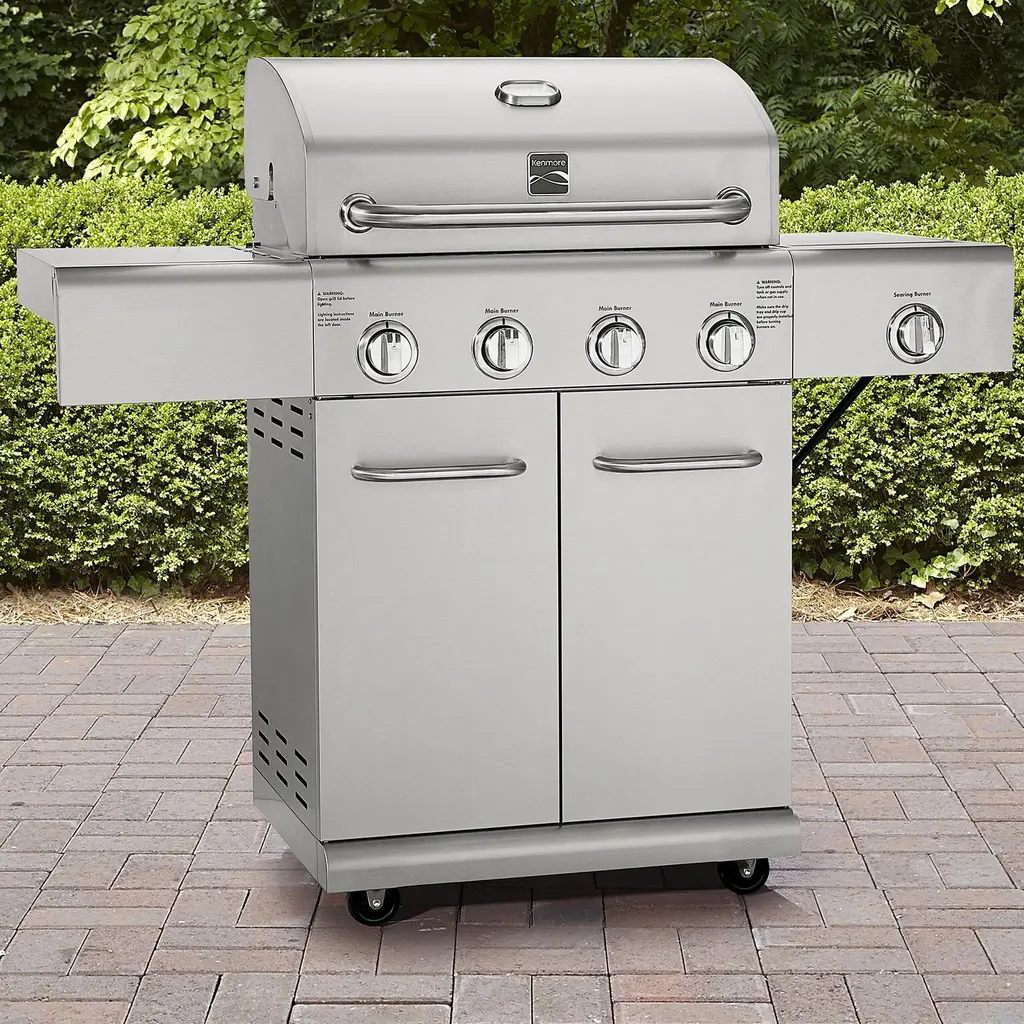 Kenmore 4-Burner Propane Gas Grill With Searing Side Burner In Stainless Steel/black - Black
