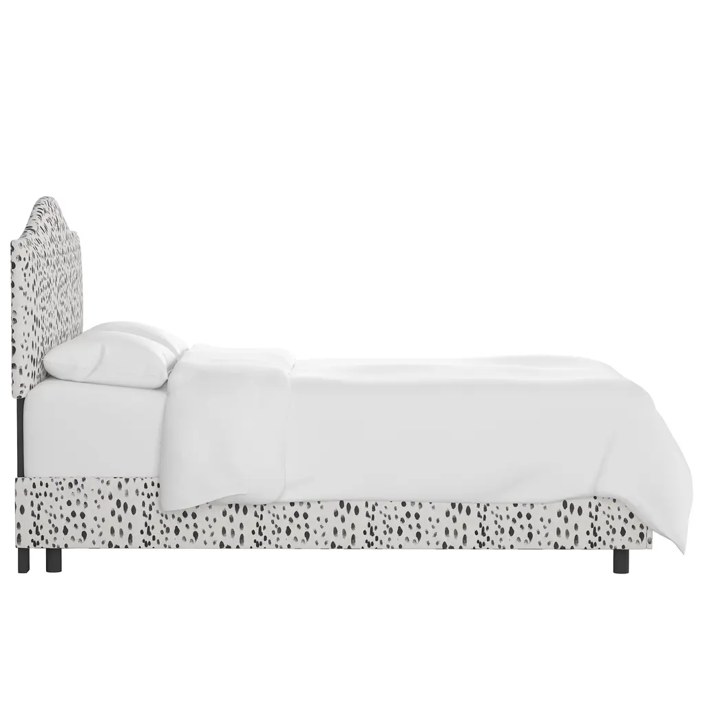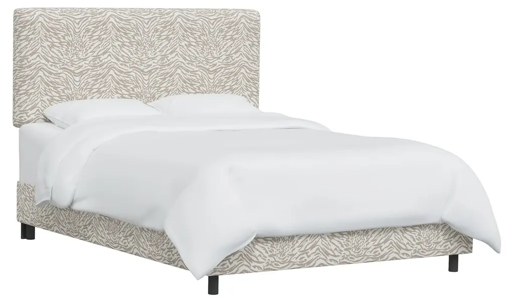 This fully upholstered bed has a unique headboard shape, allowing you to chart a course for a bedroom retreat that is at once comfortable—and distinguished. The headboard is wrapped in a sumptuous Cotton fabric, highlighting the beautiful curves and angles. The bed comes complete with fully upholstered rails and a standard metal bed frame which is easy to assemble. If you are in search of an exceptional design to serve as the primary focus in your bedroom, this bed definitely deserves consideration.
