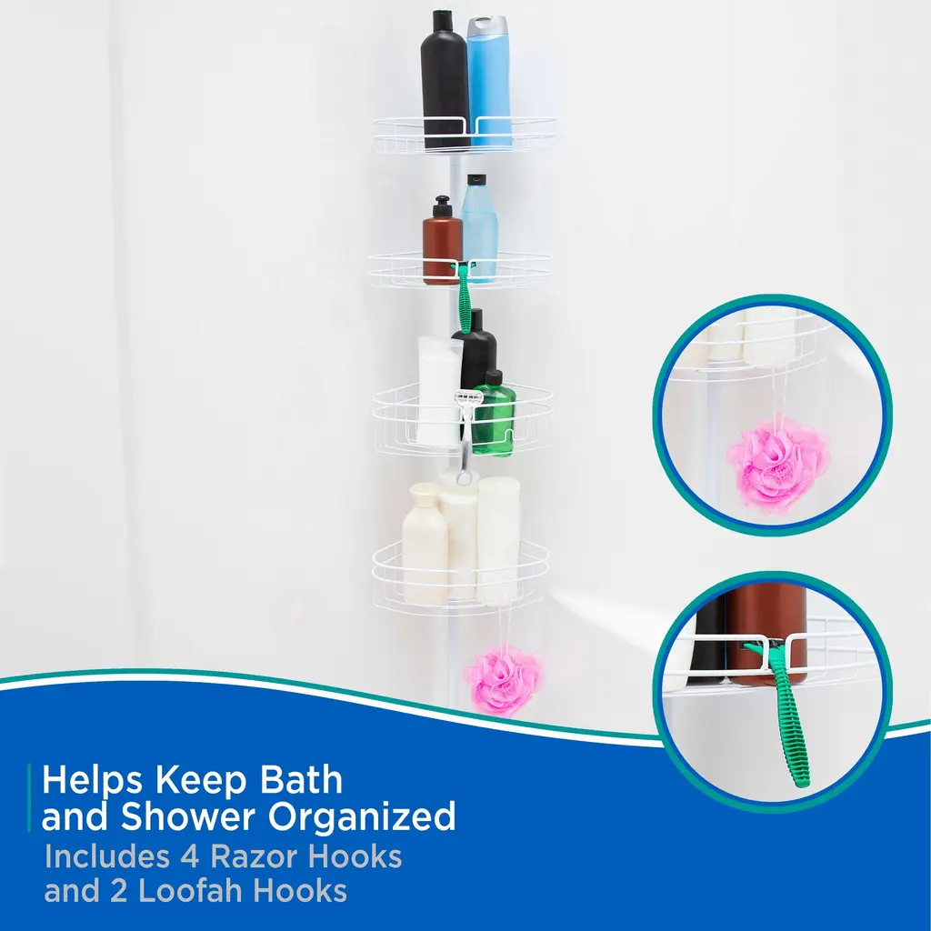 Kenney 4-Tier Spring Tension Adjustable Shower Corner Pole Caddy - White
