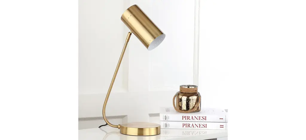 Bring form and function to any living room or home office with the clean lines and smooth curves of this Kensley Table Lamp. Crane's glamorous gold shimmer adds chic charisma to its retro style shade.