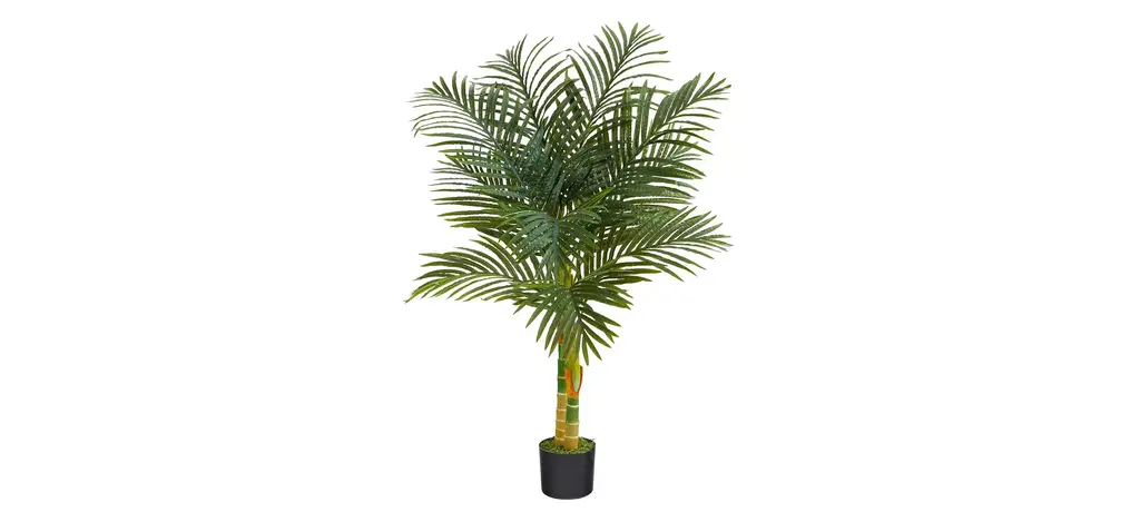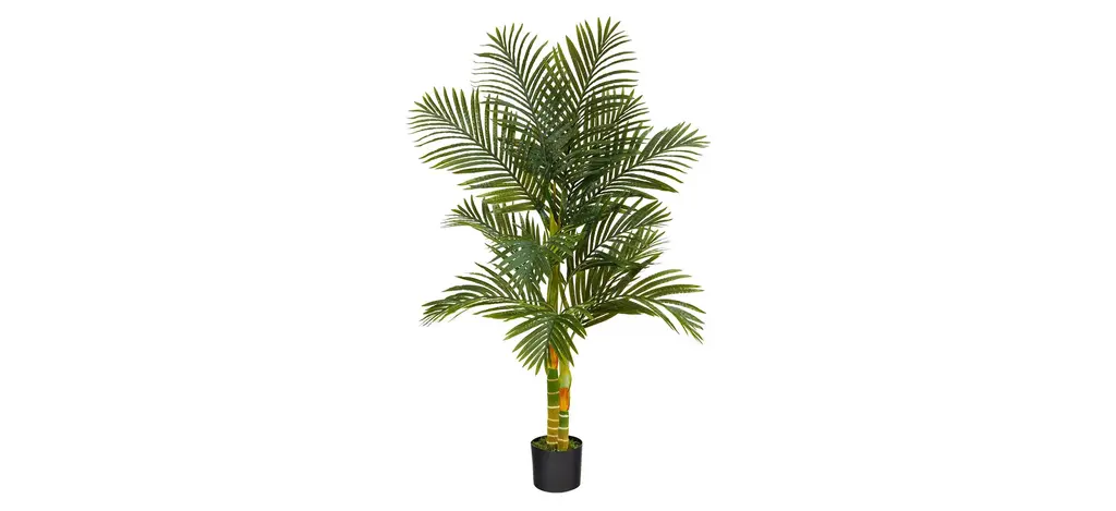 Three thick trunks rise up to produce a luscious crown of green fronds on this Kentia Palm Artificial Tree. At 4 feet in height, this piece can be used to decorate any bland corner or tight spaces that need a little bit of sprucing up. Simplistic and beautiful, this ornament will add a garden accent to any professional environment.